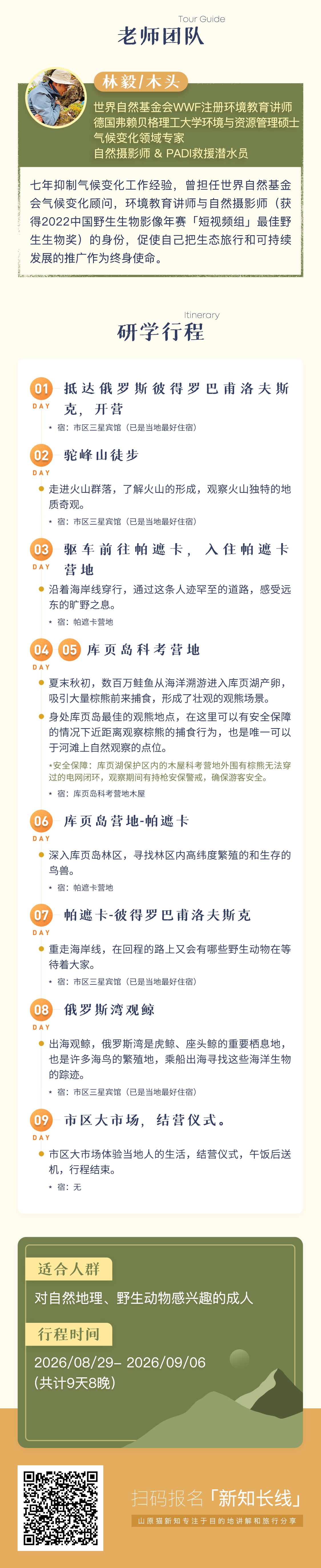 带队老师将详细介绍活动行程,并简要介绍俄罗斯远东的自然地理及野生动物概括,为随后的深度探索做好准备。