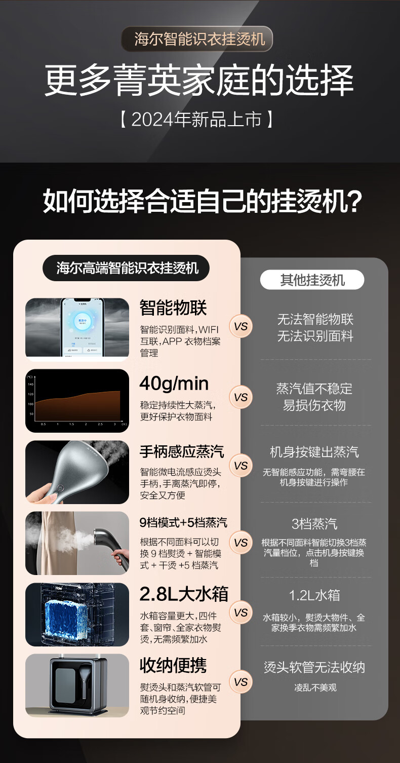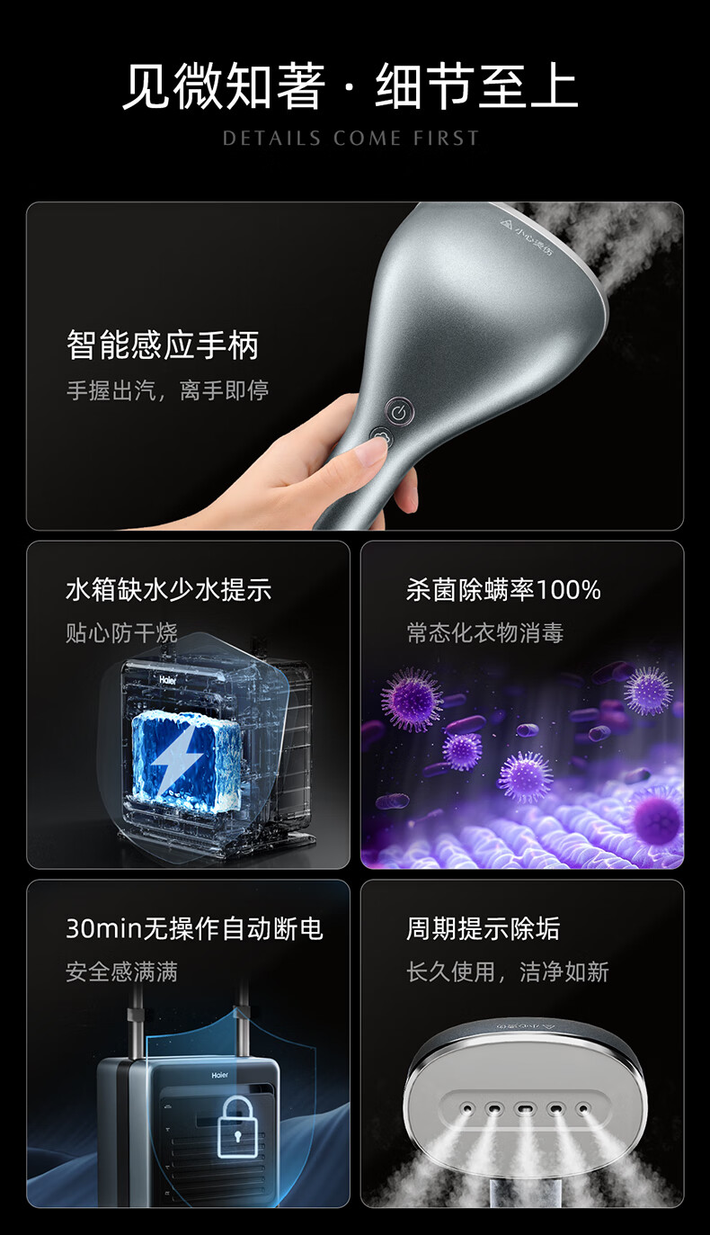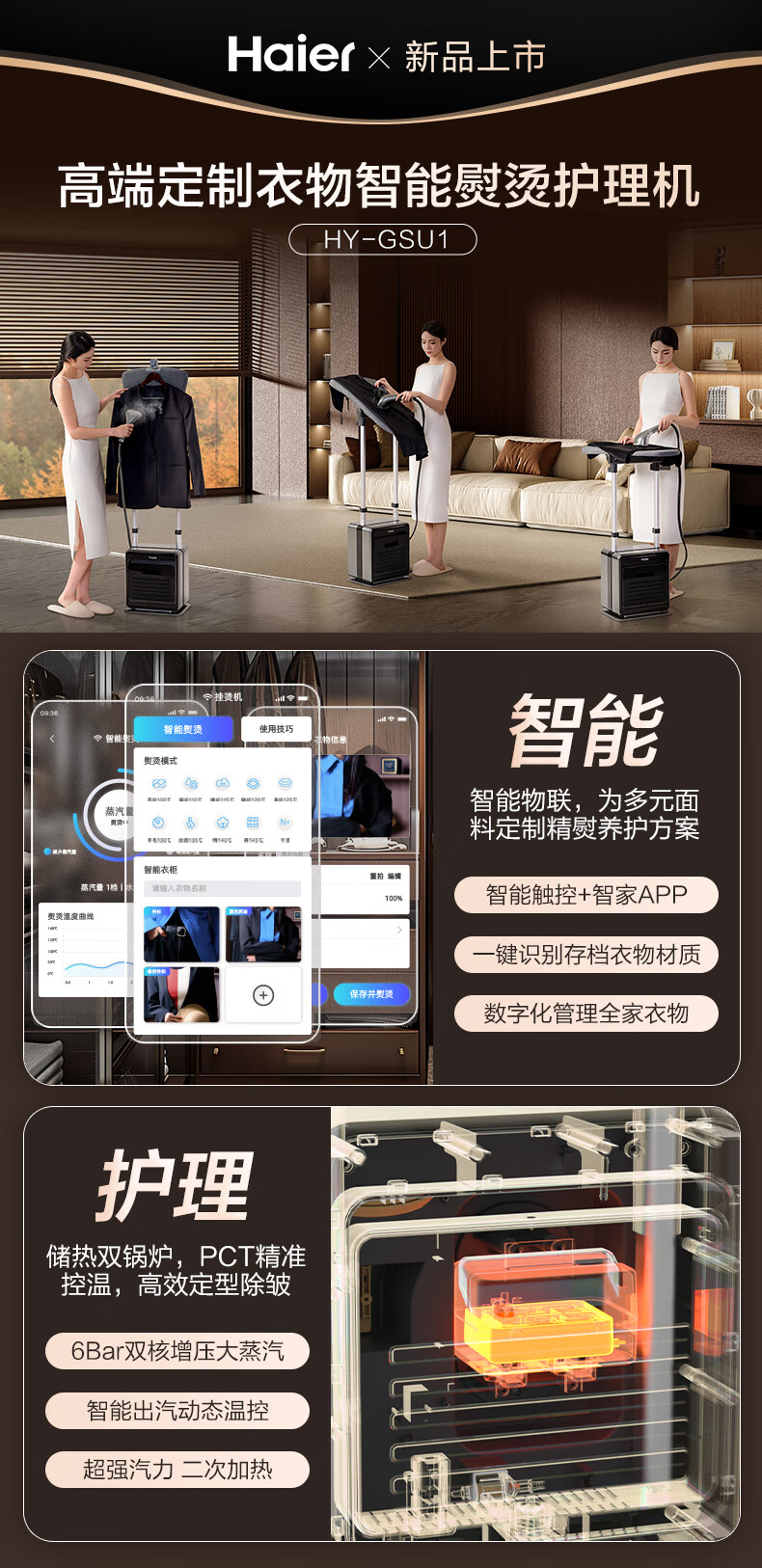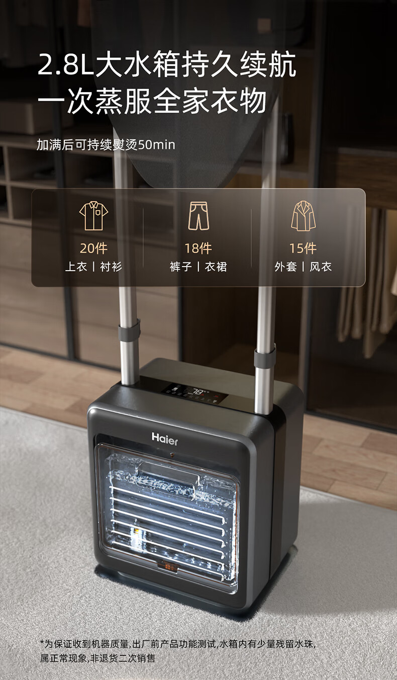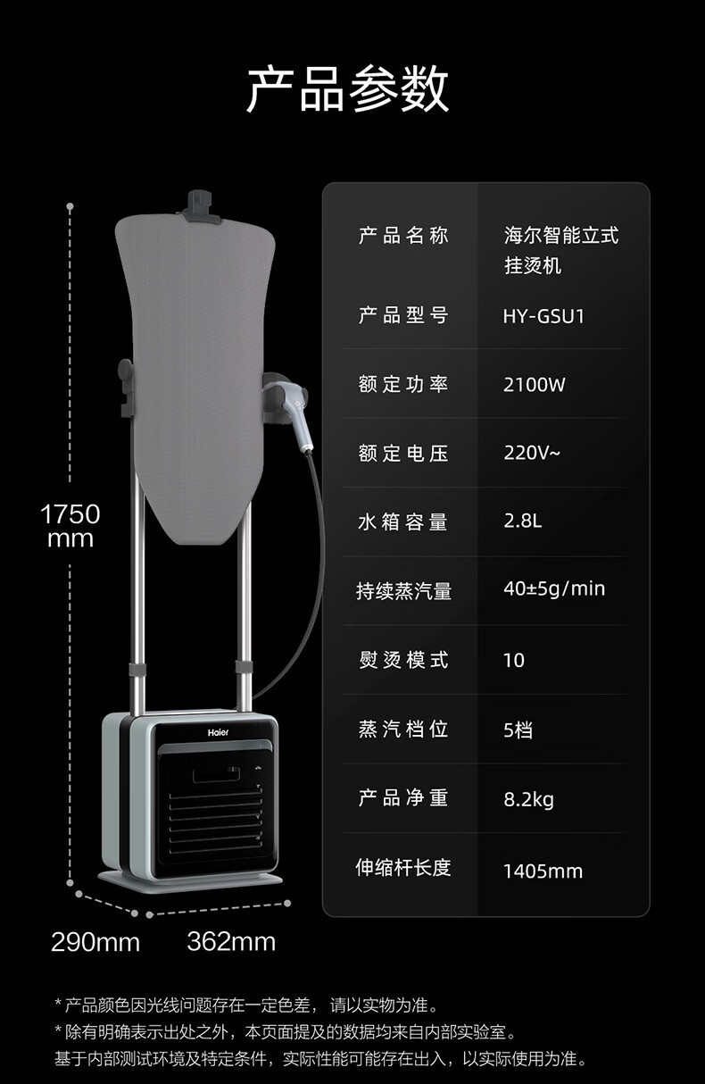 海尔【高端旗舰】立式挂烫机 AI智能识别衣物 手持电熨斗 家用商用服装店干洗店熨烫机HY-GSU1