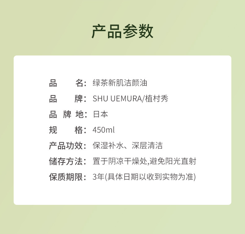SHU UEMURA/植村秀 绿茶新肌洁颜油 卸妆液 450ML