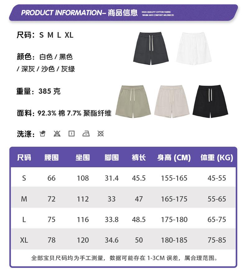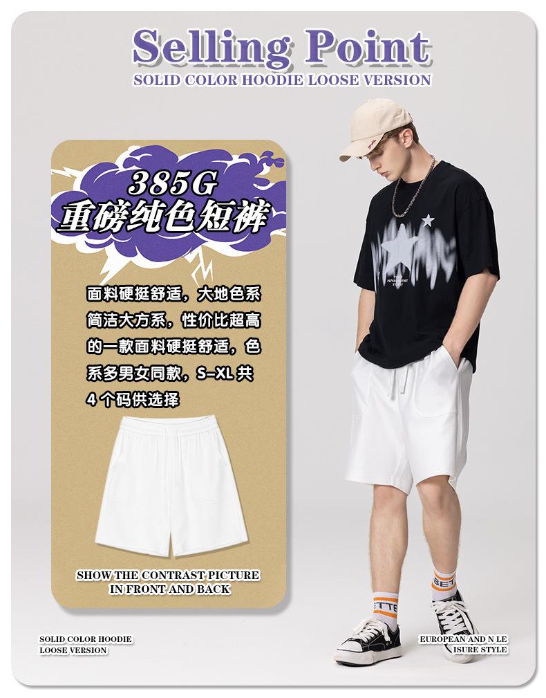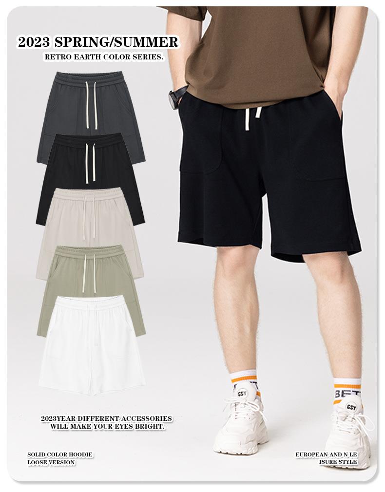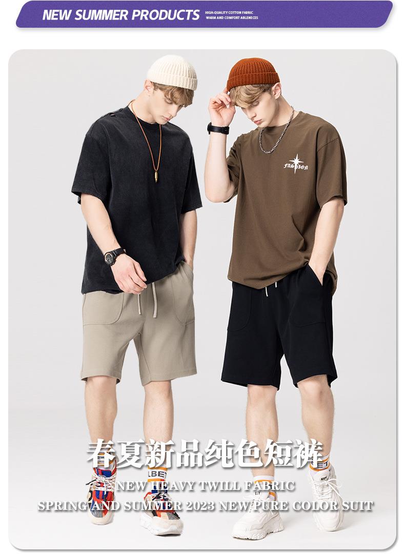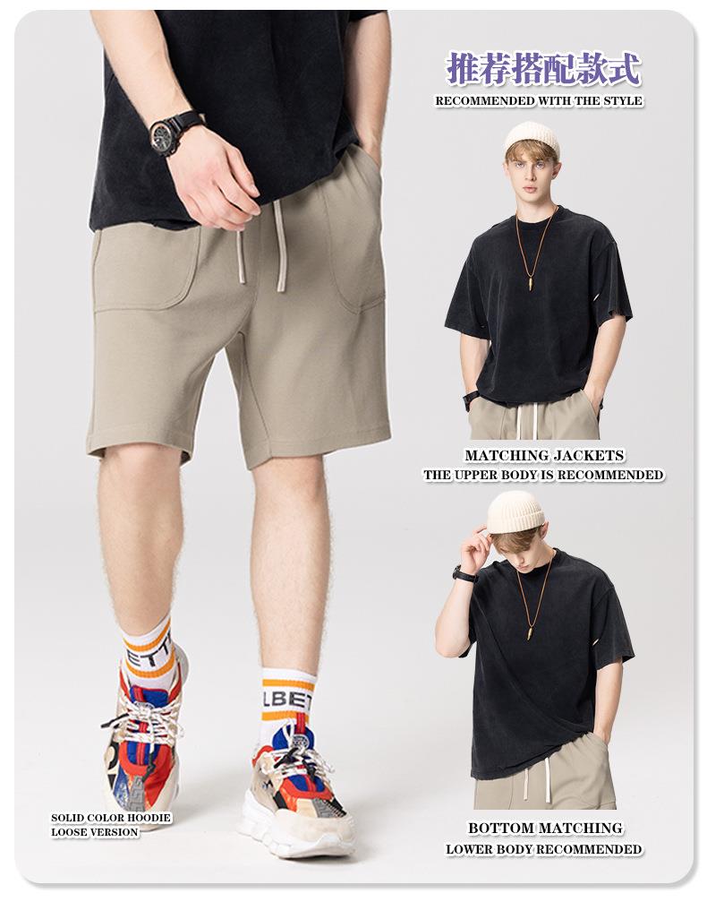 RS男装|2023夏季385g重磅反袋设计纯色短裤美式潮牌运动休闲裤男