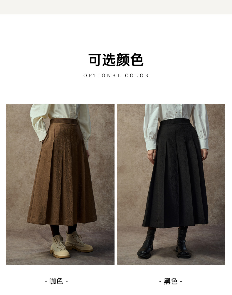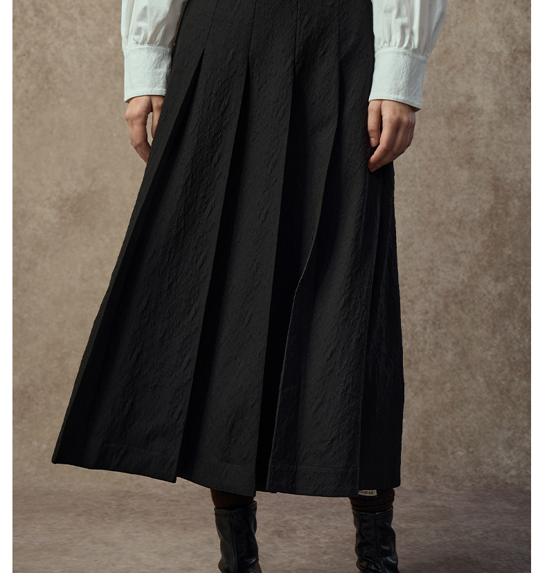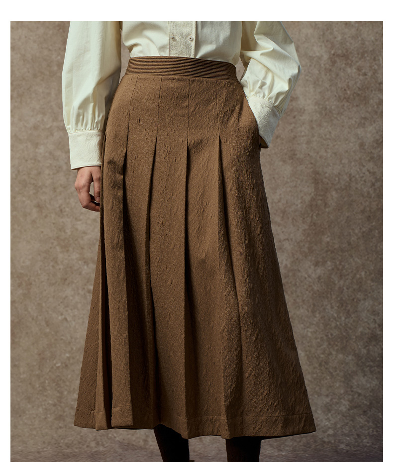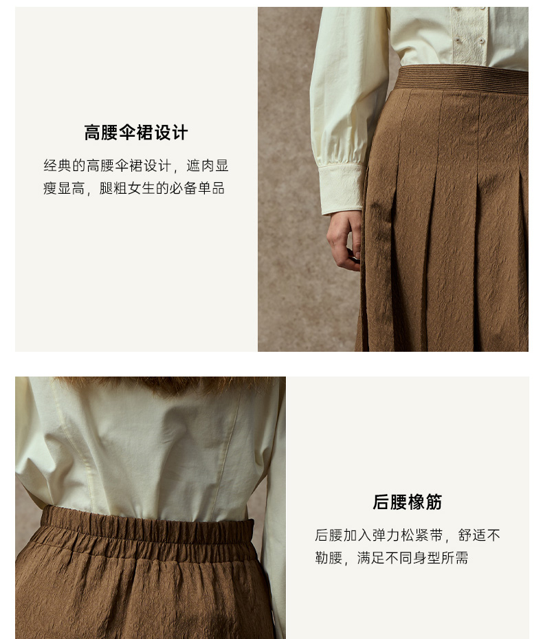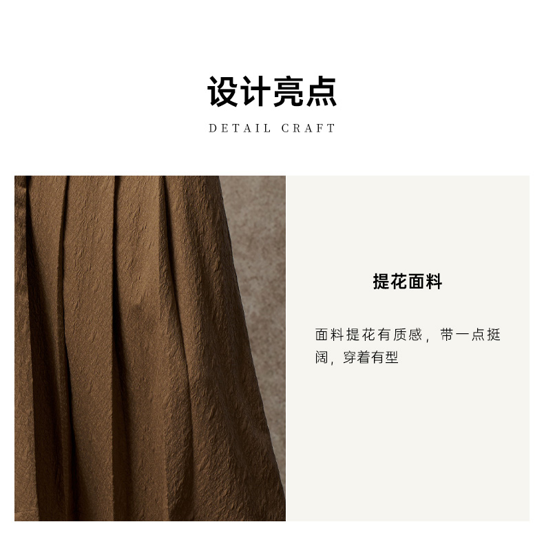 Famecoco范可儿高腰百褶A字裙中式提花遮肉长裙FAC8HA023