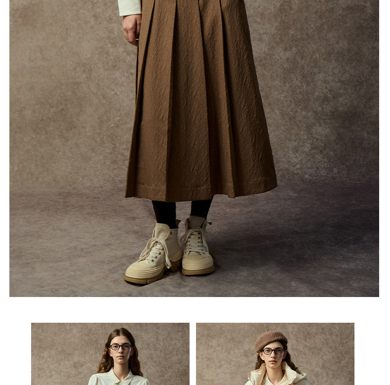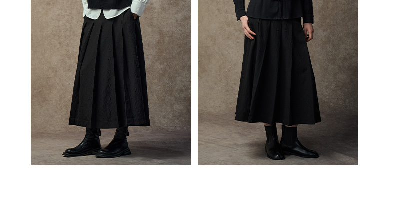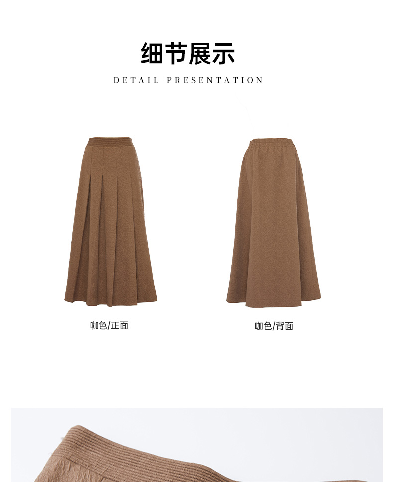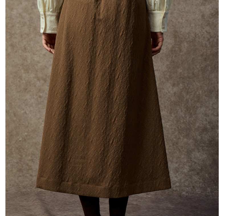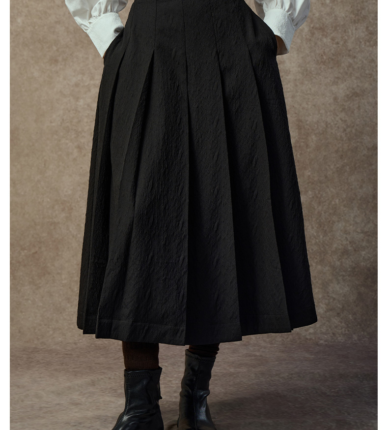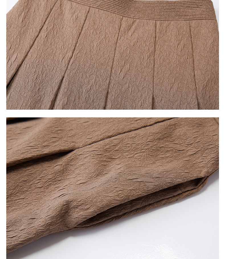 Famecoco范可儿高腰百褶A字裙中式提花遮肉长裙FAC8HA023