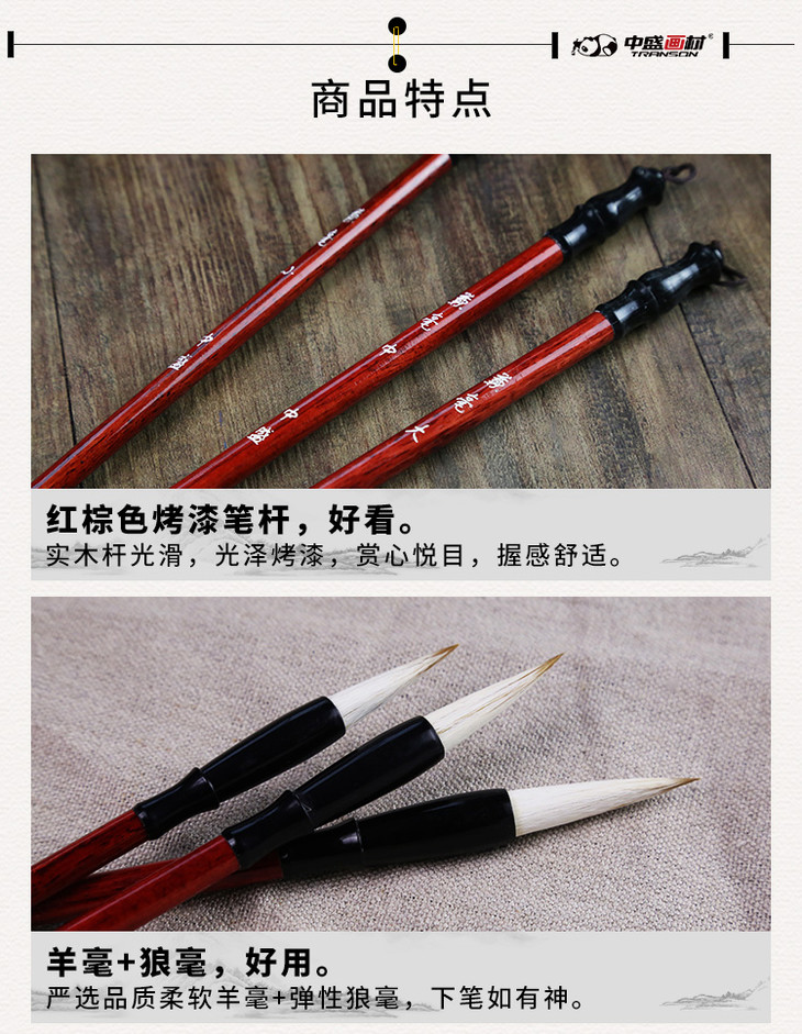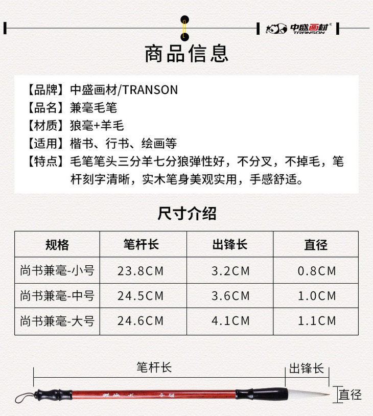 中盛画材 兼毫书法毛笔大中小楷毛笔 羊毫狼毫书法专用 文房四宝