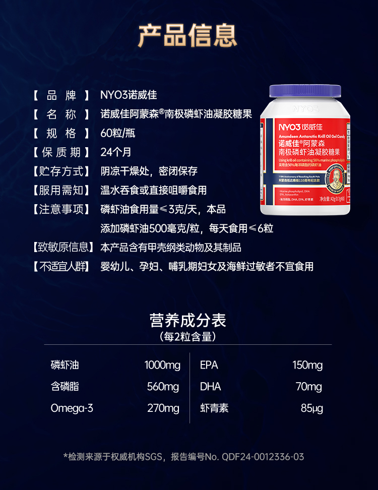 【磷虾油礼盒装 仰和仰妈同款】诺威佳阿蒙森磷虾油凝胶糖果60粒礼盒装