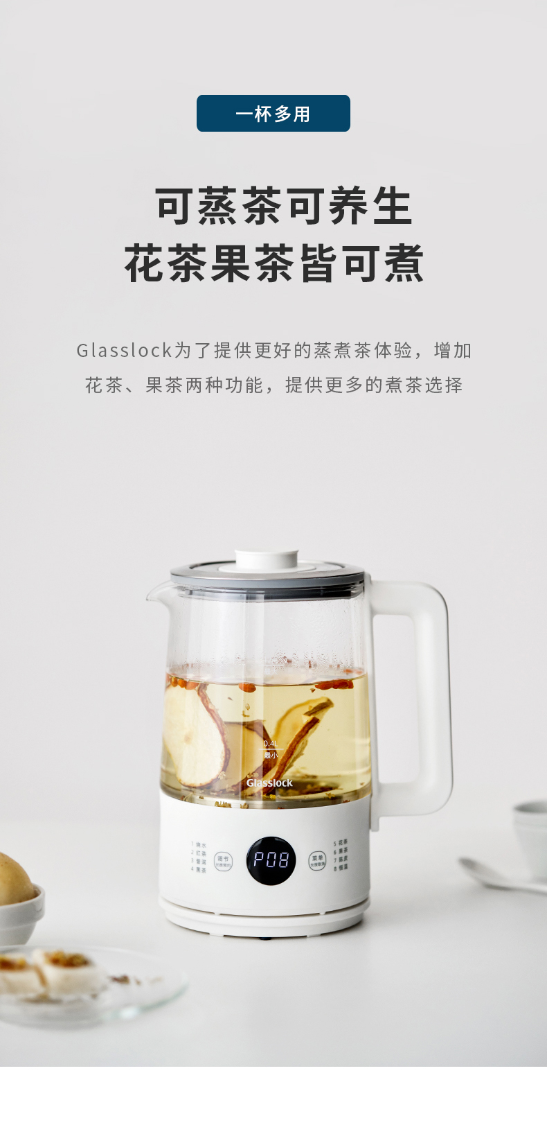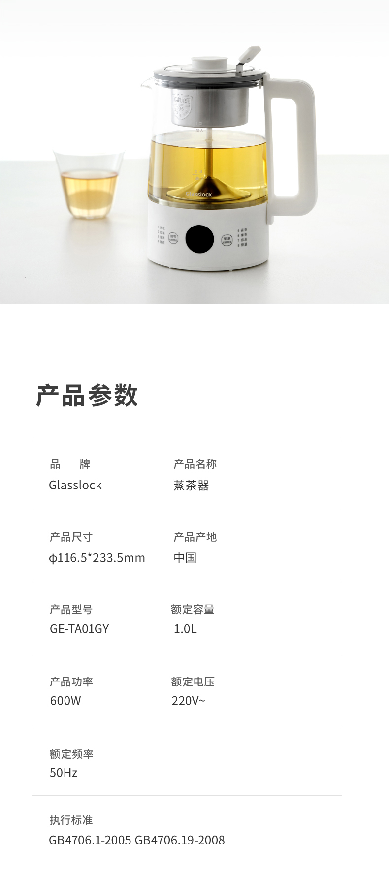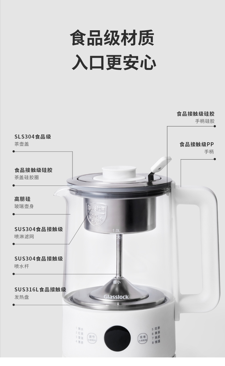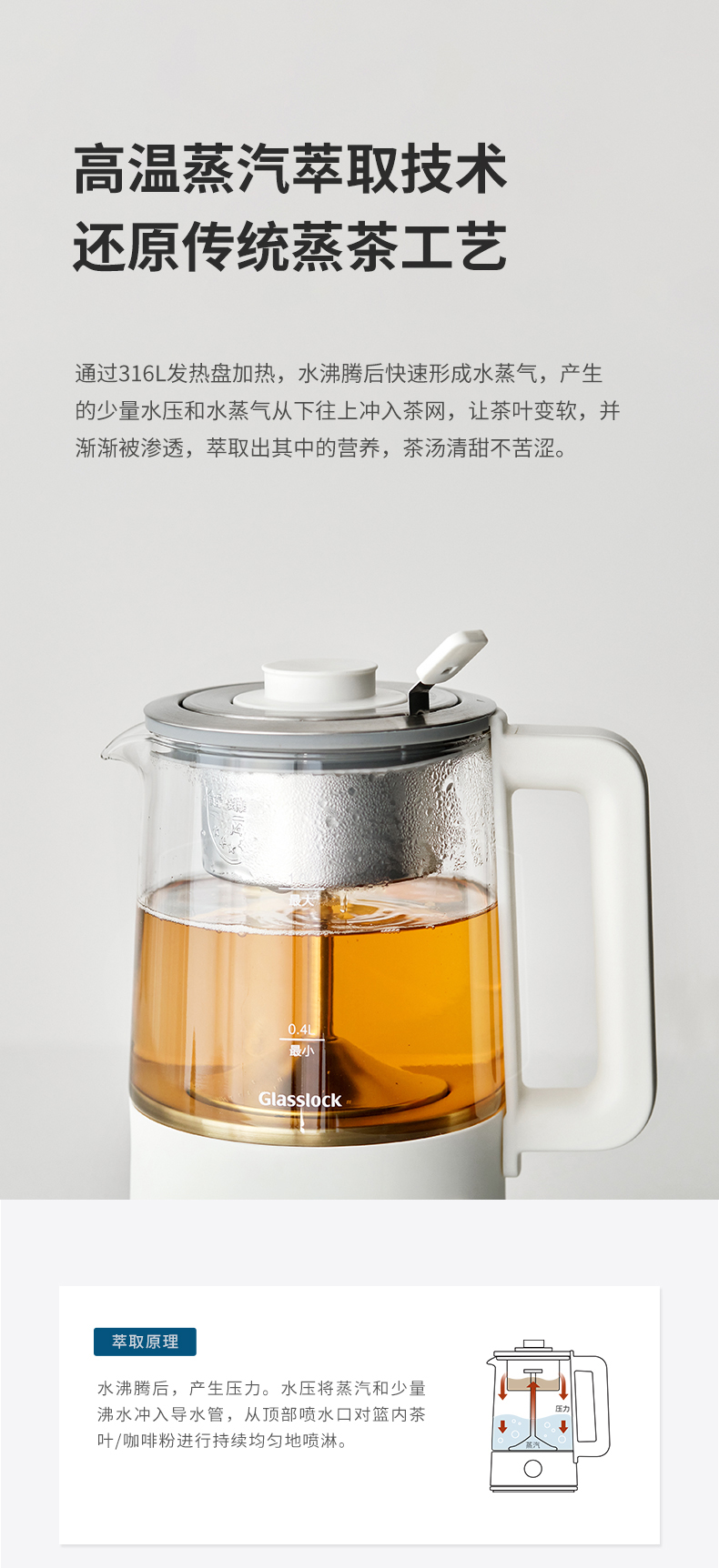 韩国Glasslock煮茶器蒸汽煮茶壶办公室养生壶小型喷淋式泡茶壶