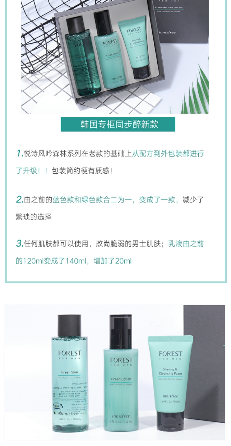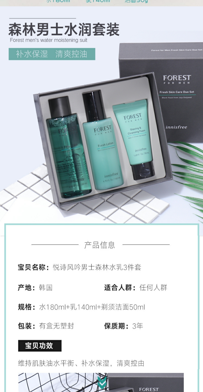 【YZ】韩国innisfree/悦诗风吟森林男士水乳护肤套盒套3件套