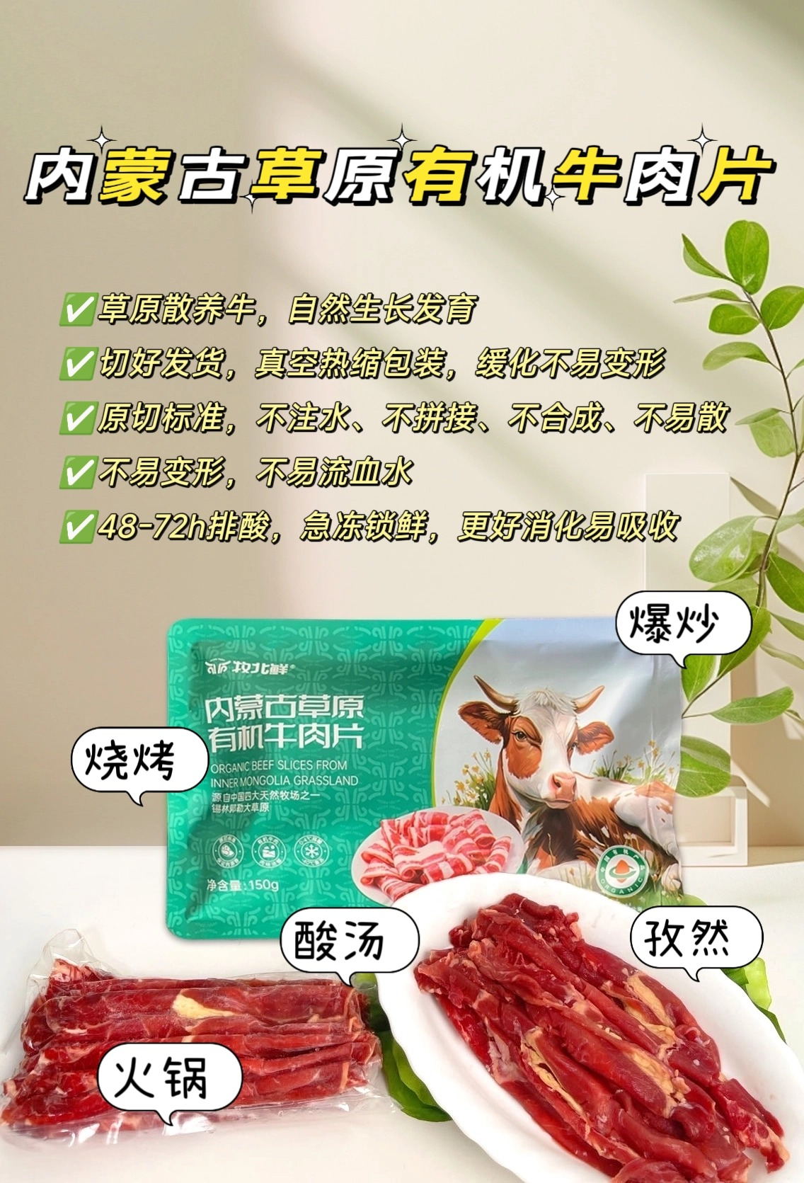 选用内蒙古草原散养牛🐂养足天数,拒绝育肥,自然生长发育,肉质偏瘦,但不干不柴~