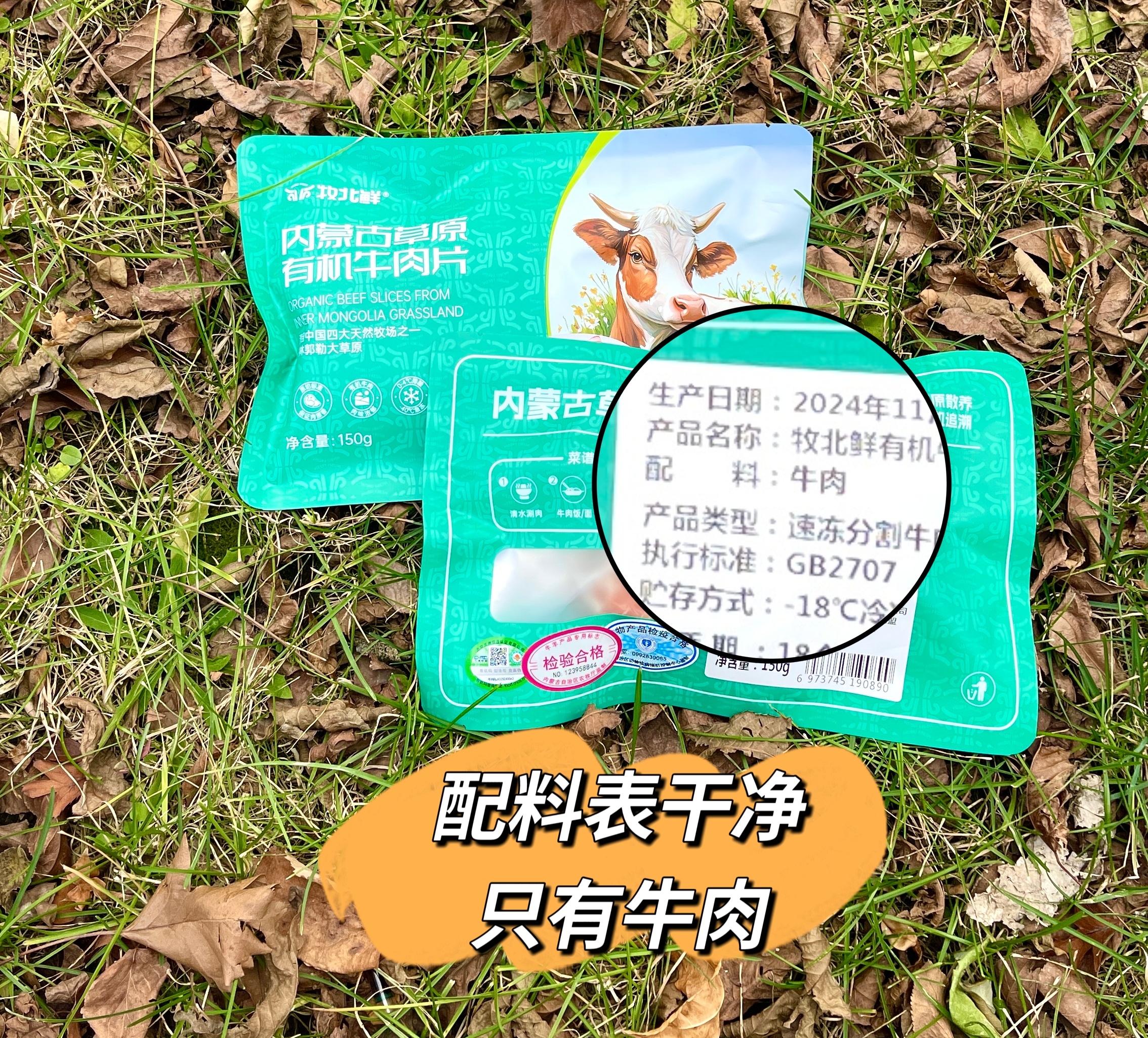 2、配料表只有牛肉,拒绝调理,拒绝注水,拒绝拼接,色泽红润,可以很清晰的看见肉的纹路