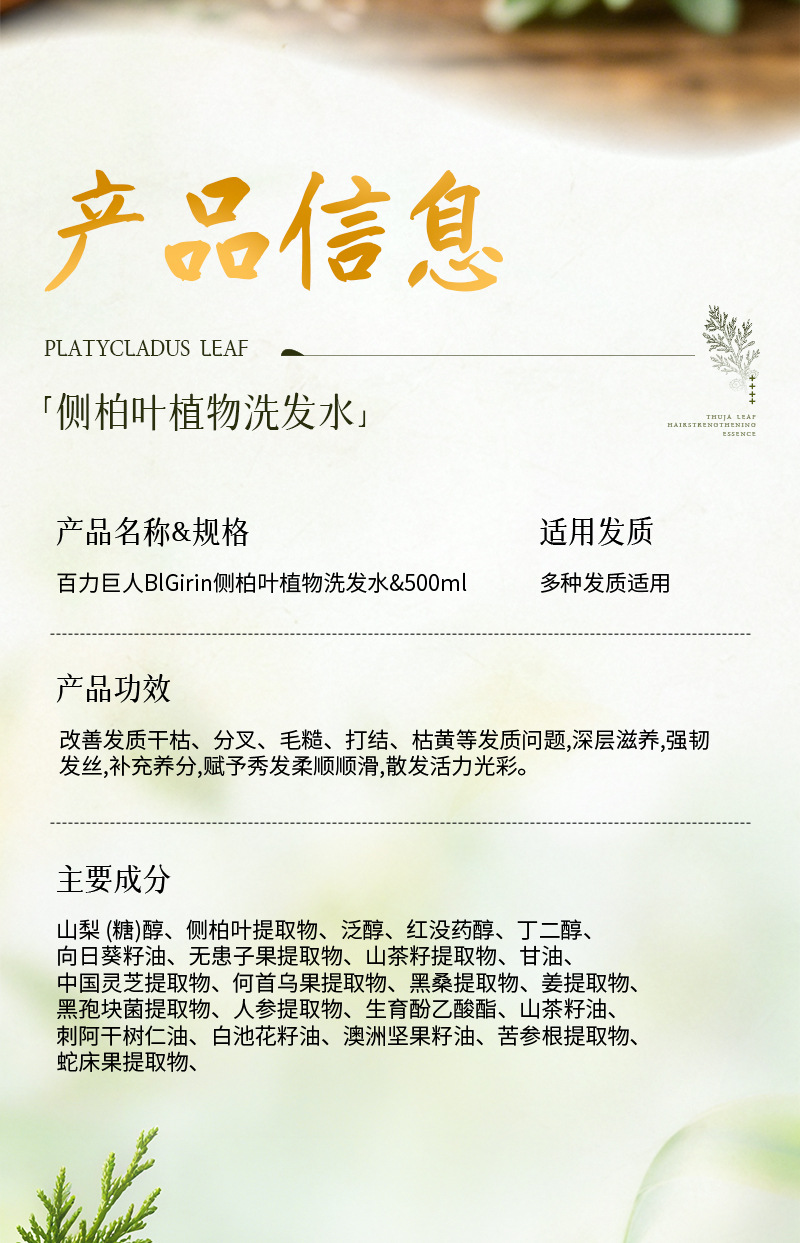春节不打烊【植萃韧发❗️护发清洁】百力巨人草本植萃侧柏叶洗发水头发清洁控油蓬松控油洗发露。jd