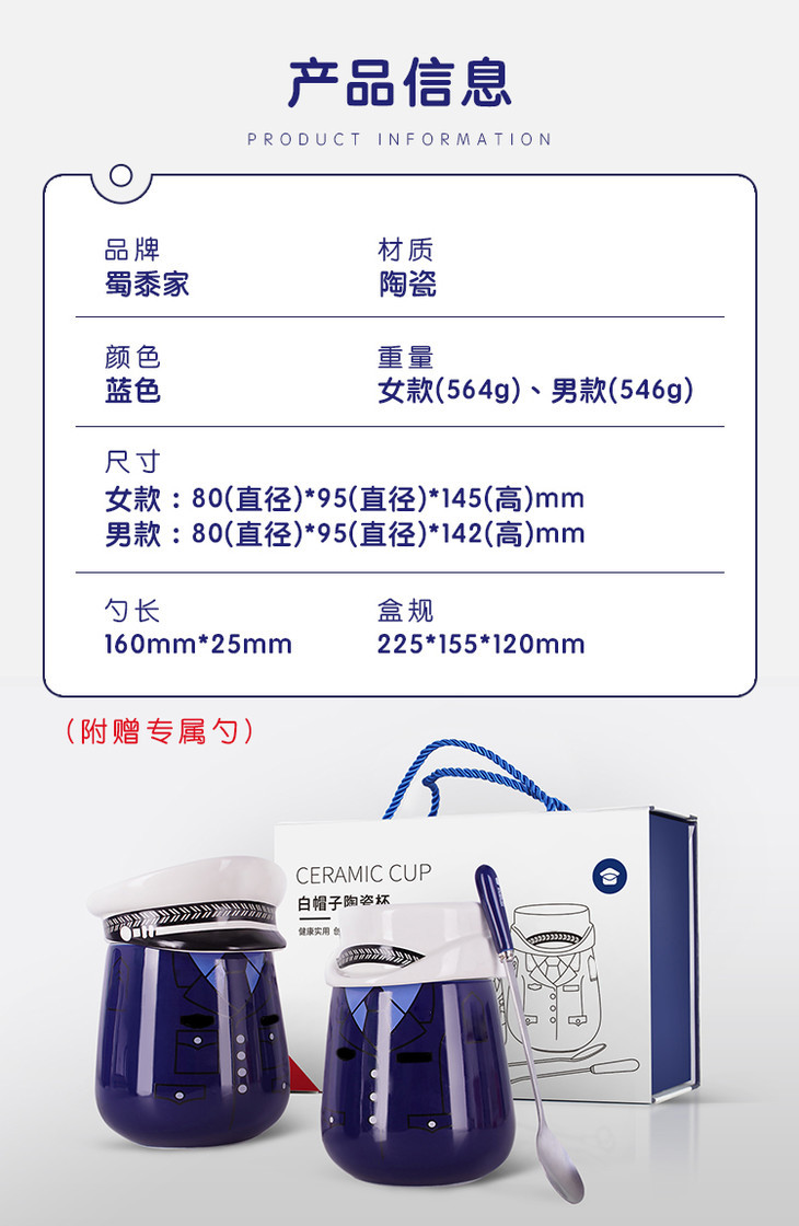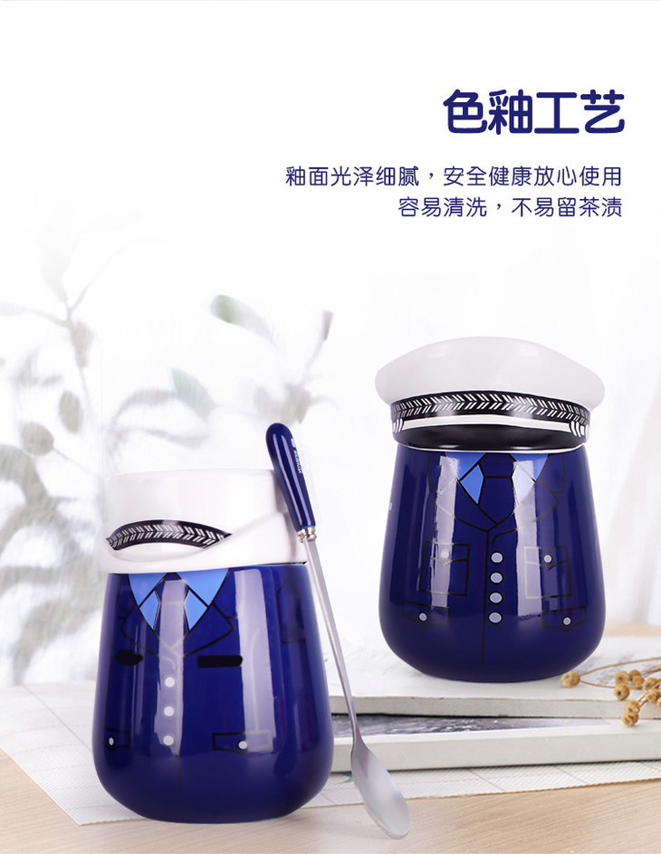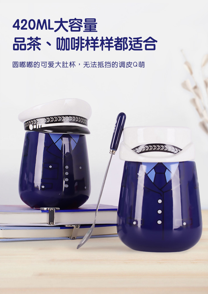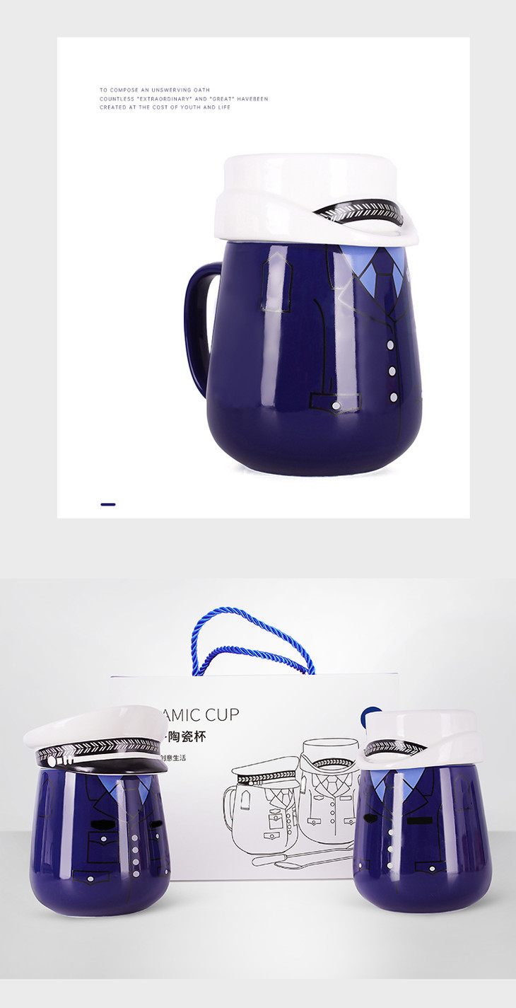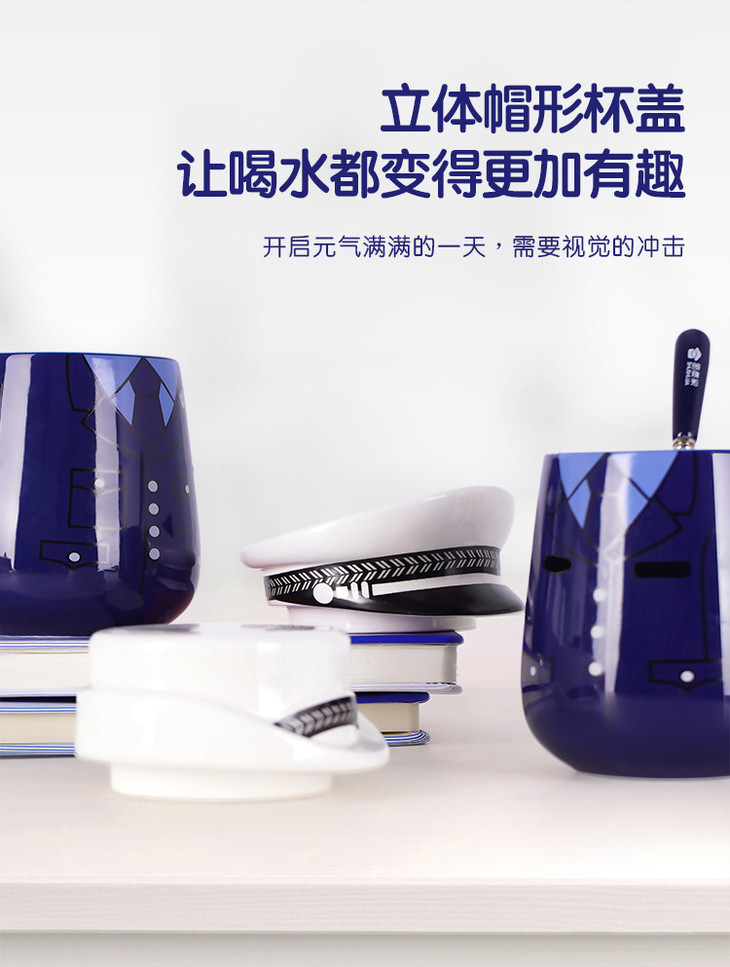【白帽子陶瓷杯】创意手柄马克杯 办公室创意带盖水杯