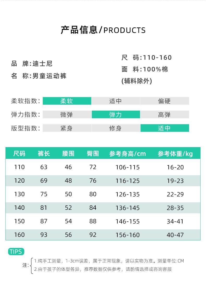 唯品迪士尼女童春秋款元青拼阔腿裤
