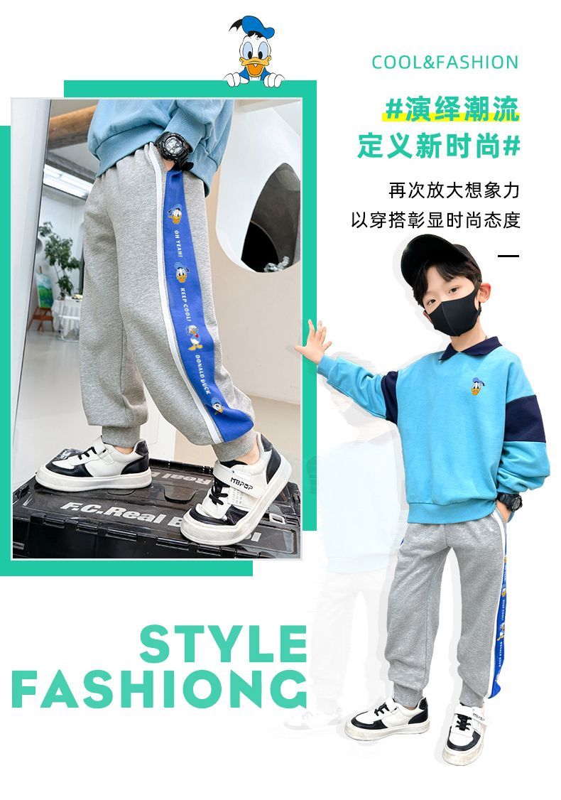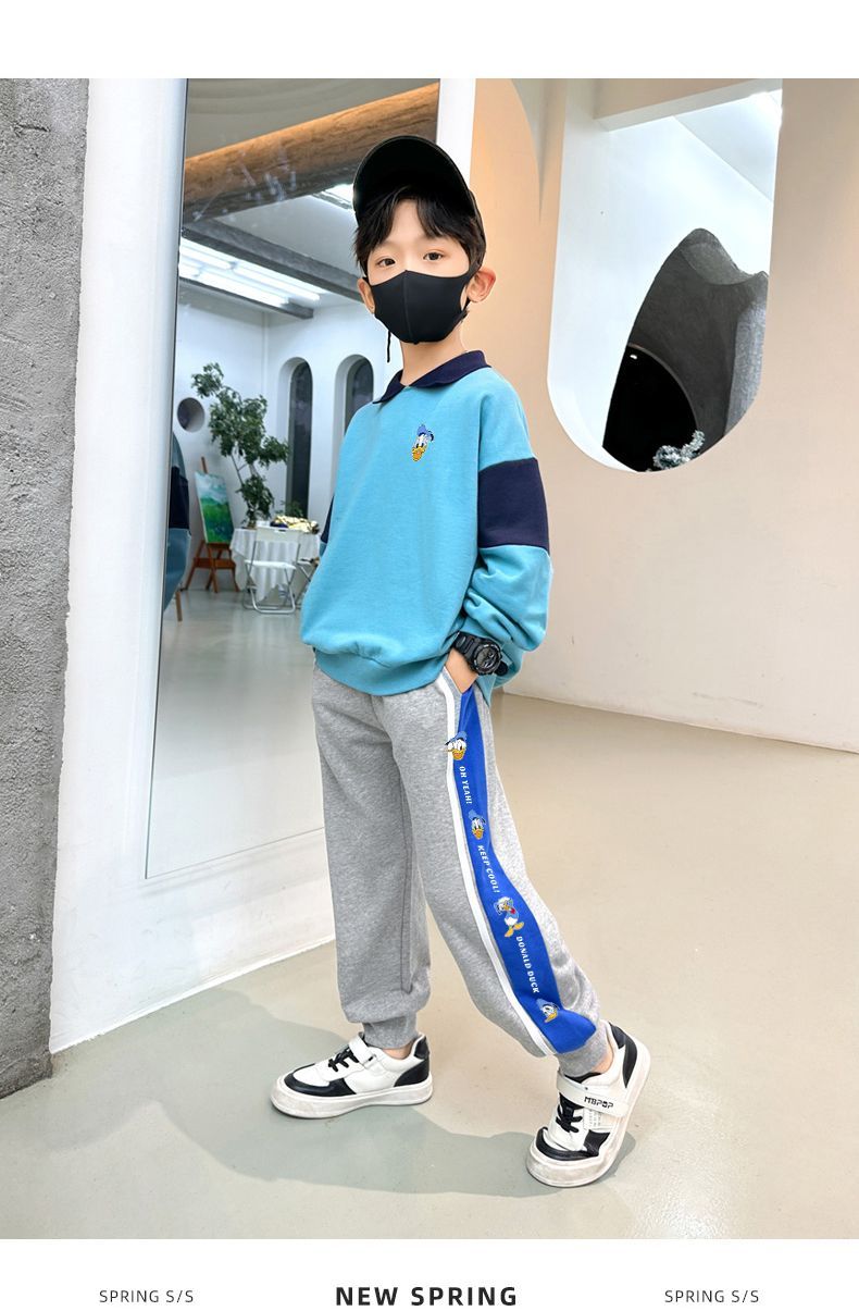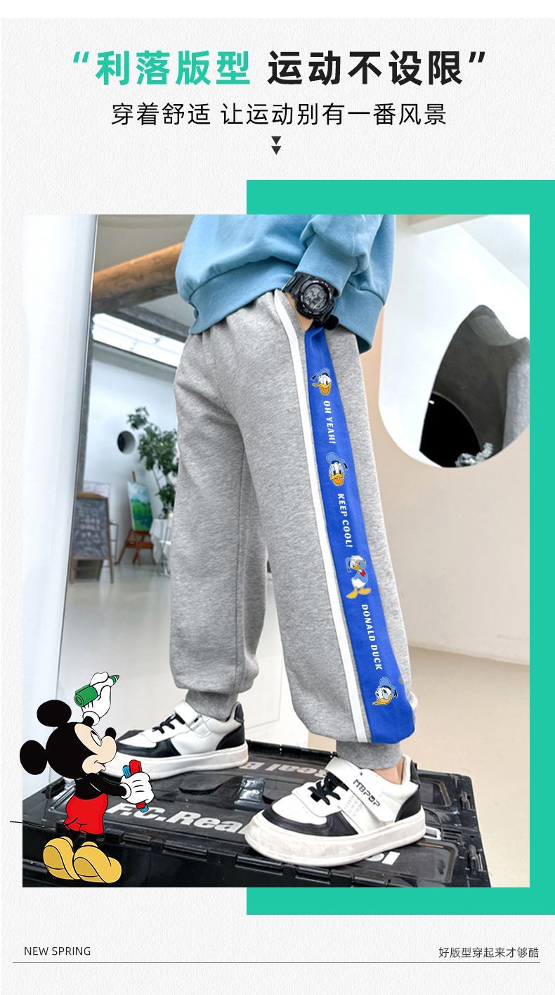 迪士尼男童裤子春季2025新款男大童运动裤春秋款儿童休闲卫裤春装