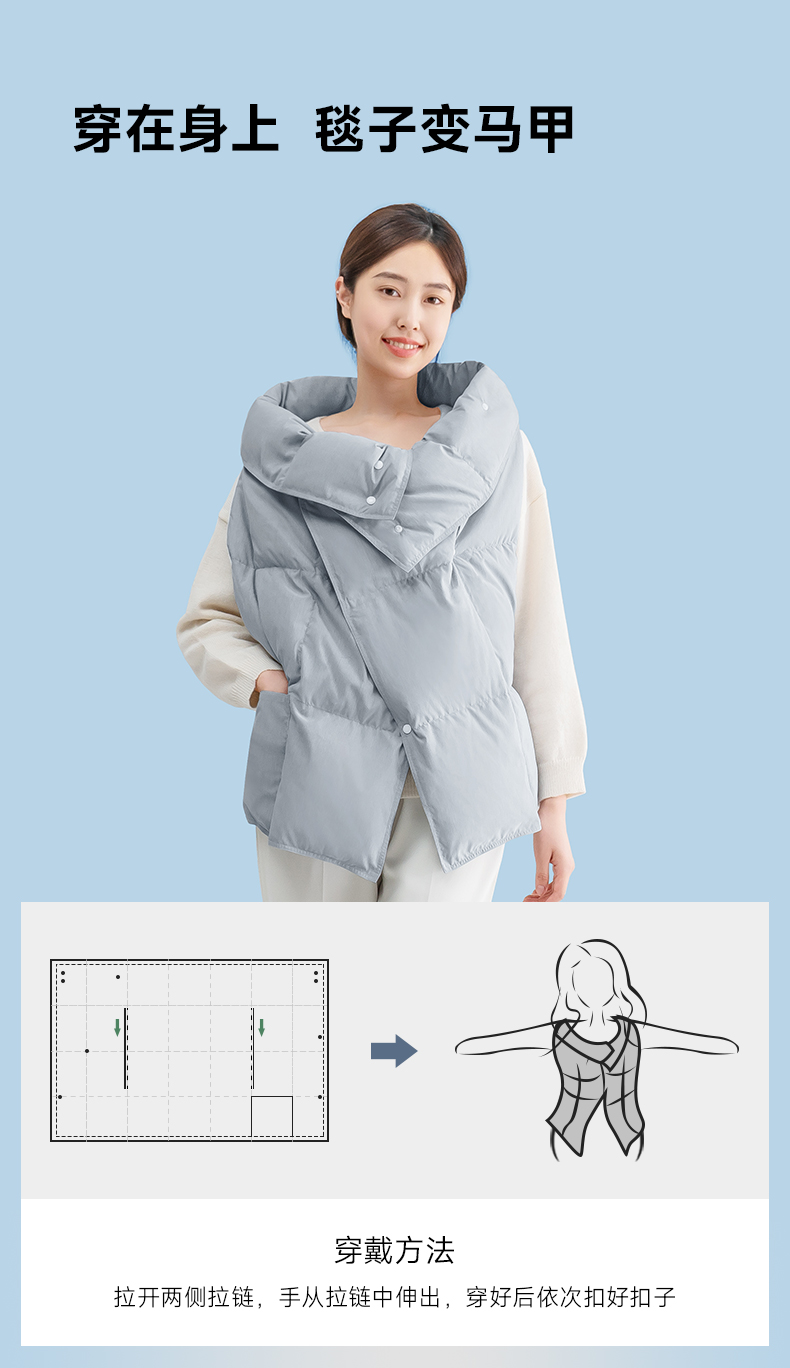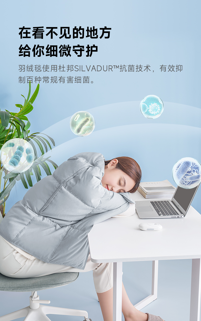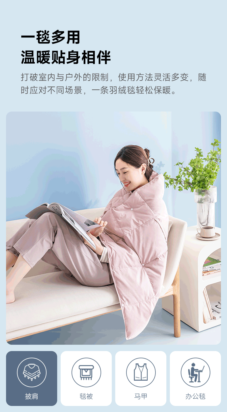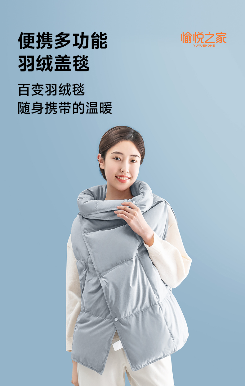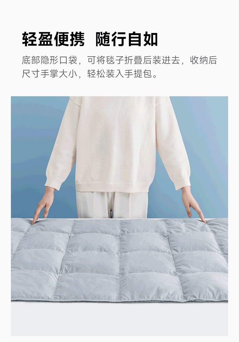 【叠起来只有巴掌大小 90%鸭绒】愉悦之家 便携多功能羽绒盖毯 一级鸭绒毯更轻柔