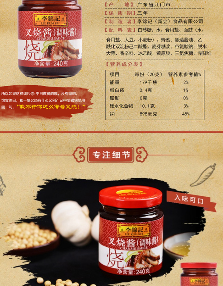 【团长特惠】叉烧酱240g,精选优质面豉、蜂蜜等调配而成,香气馥郁,酱体细滑