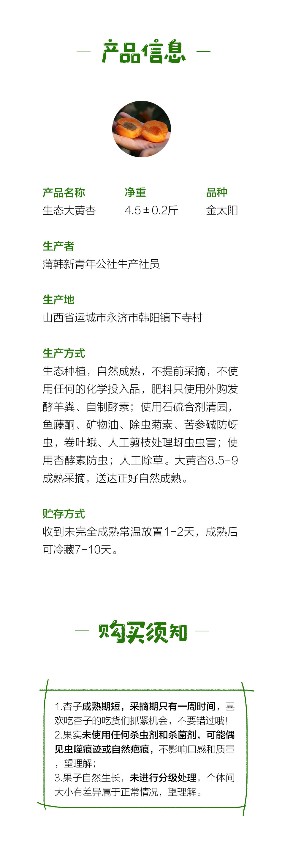 生态大黄杏(基地直发-顺丰包邮)|4.5斤/箱,来自山西运城,生产者:蒲韩新青年公社【合作生产,公平贸易】