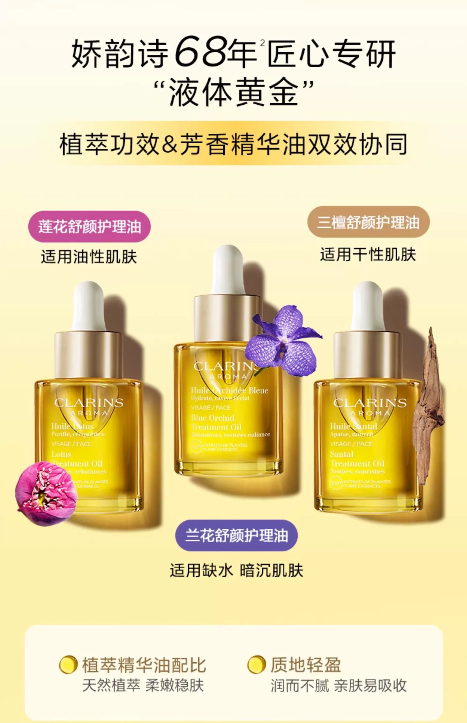 法国 Clarins娇韵诗 莲花/兰花/三檀 舒颜面部护理油 30ml