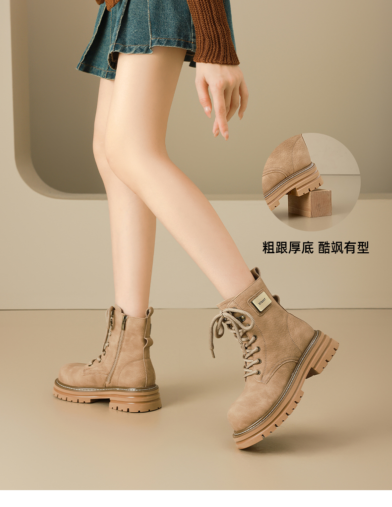 星期六舒适羊皮v口粗跟中后空SSC3114047