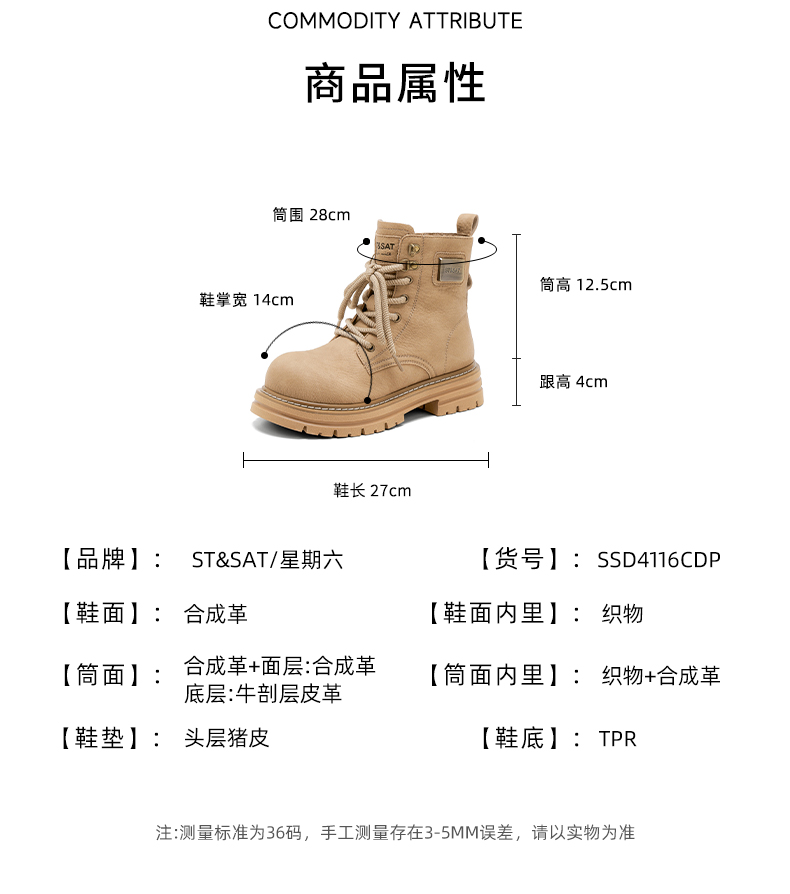 星期六休闲复古百搭厚底小白鞋SSC3112N05