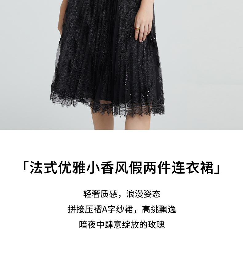 皮尔卡丹女装夏季新款黑红色假两件连衣裙时尚短袖AB配裙子女
