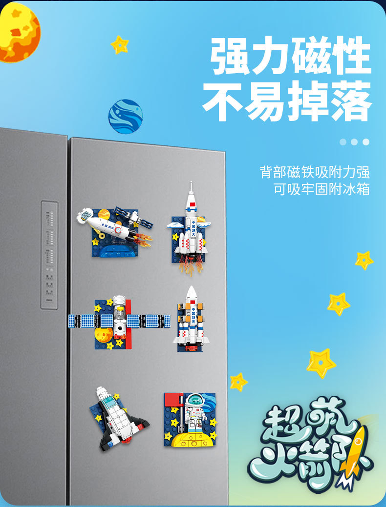 【6盒装】森宝积木正版航天火箭磁吸冰箱贴儿童 智拼装玩具小朋友礼物6盒