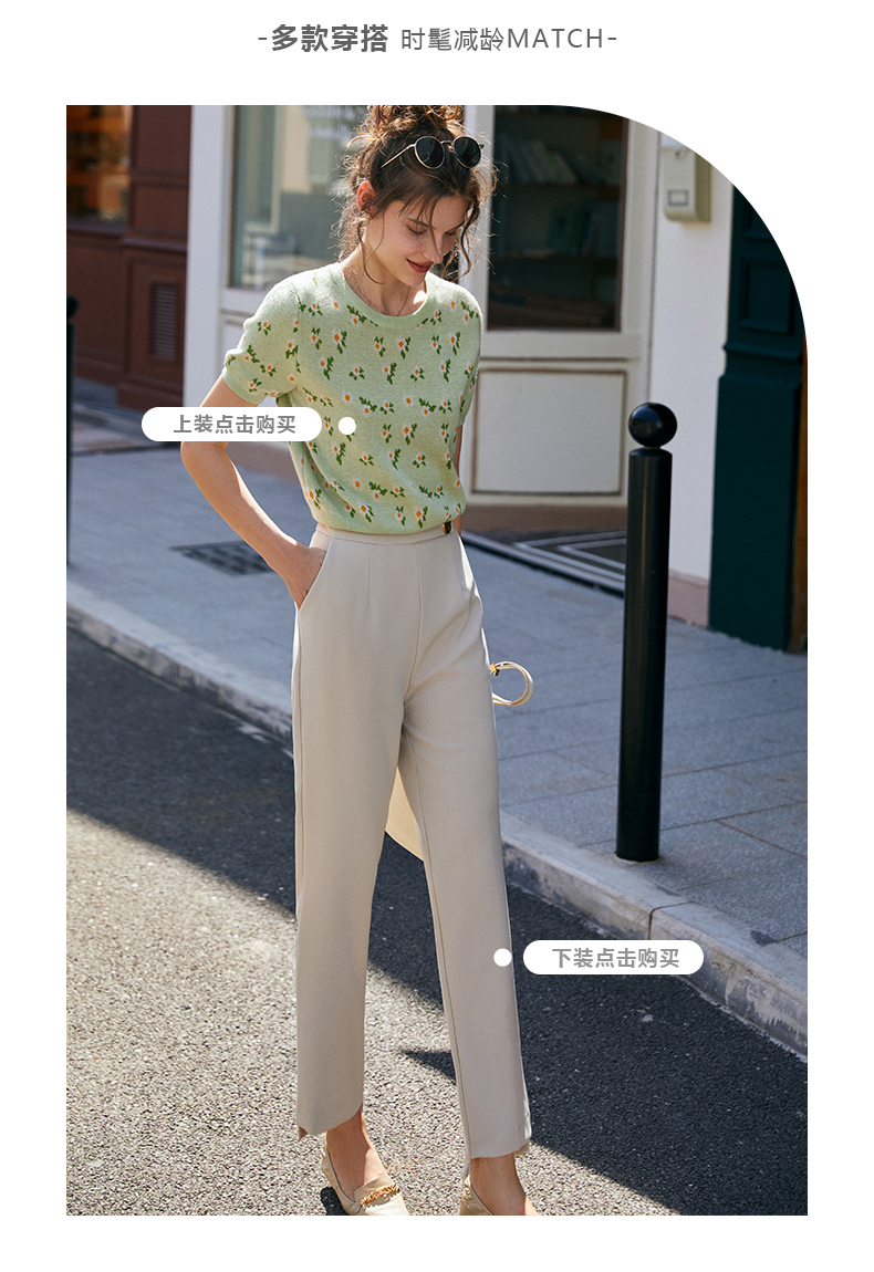 大长腿的秘密 高级感老钱风【梦惠妮 高腰花苞休闲裤】特殊版型 包容身材 遮肉显瘦 视觉显高 水洗棉透气不粘汗 九分裤阔腿裤 #M663
