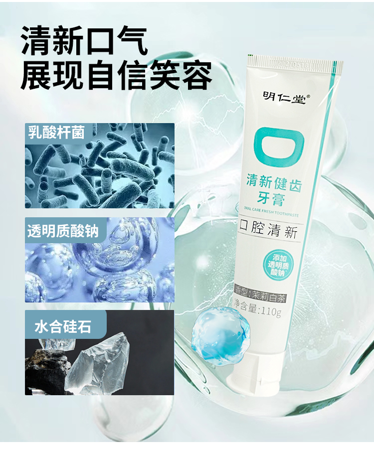 【秒杀】福瑞达明仁堂清新健齿牙膏110g大支装*3支