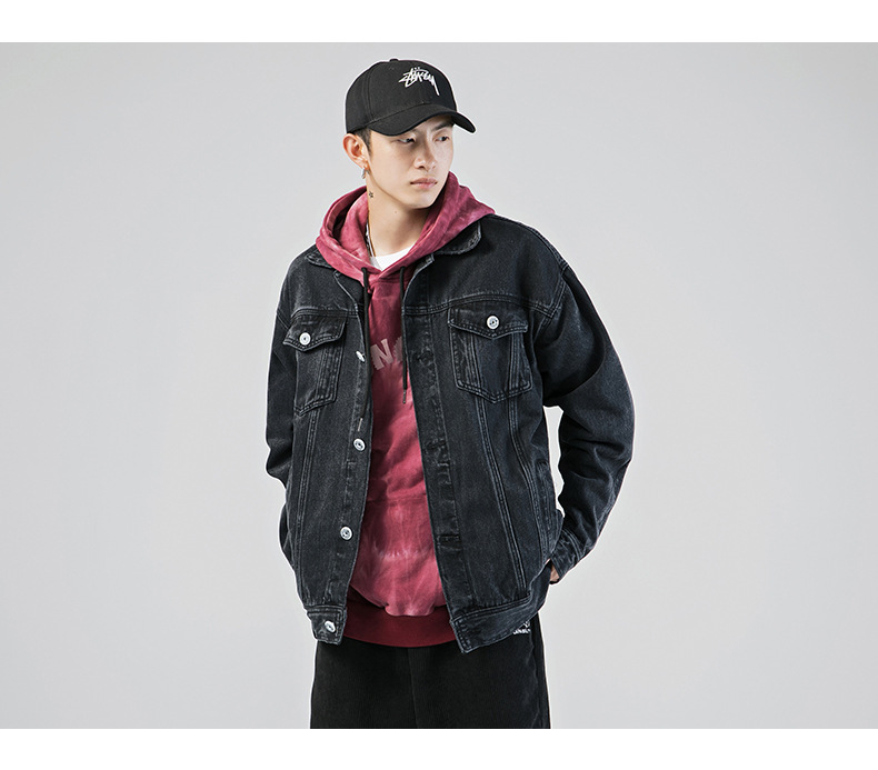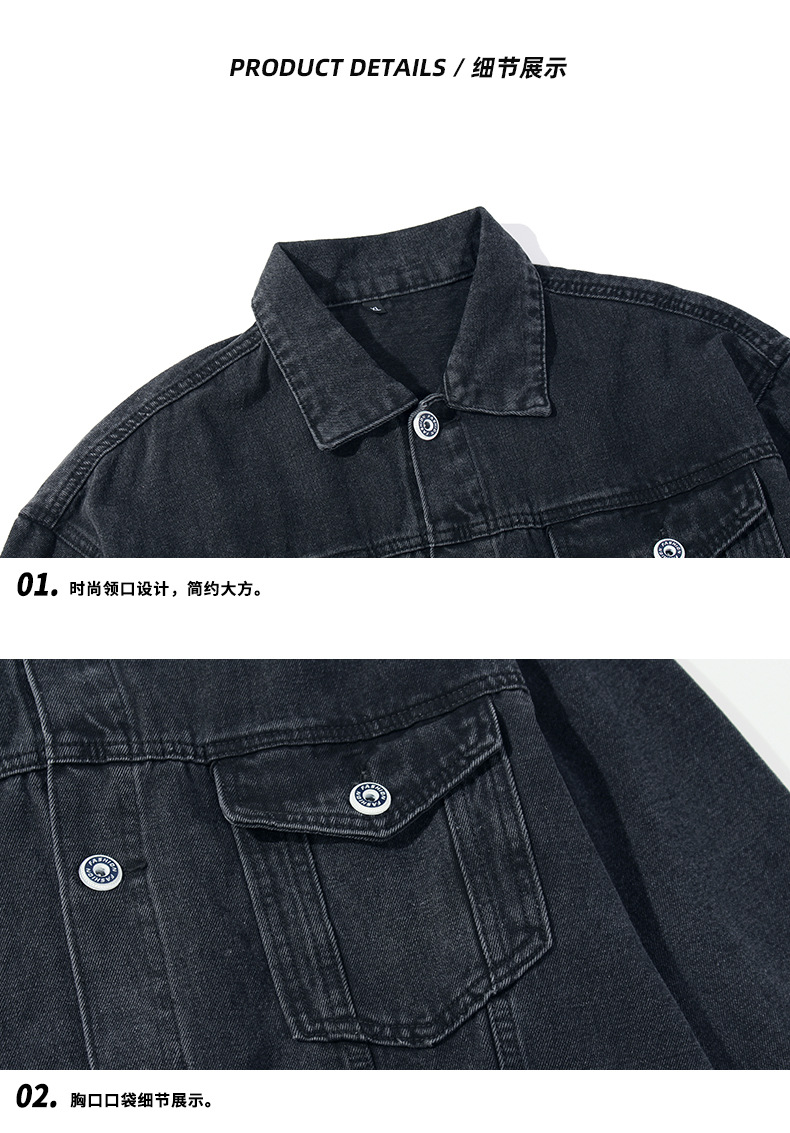 「两款配色」韩路日系男装 牛仔夹克男2023春季新款复古水洗宽松翻领休闲外套上衣