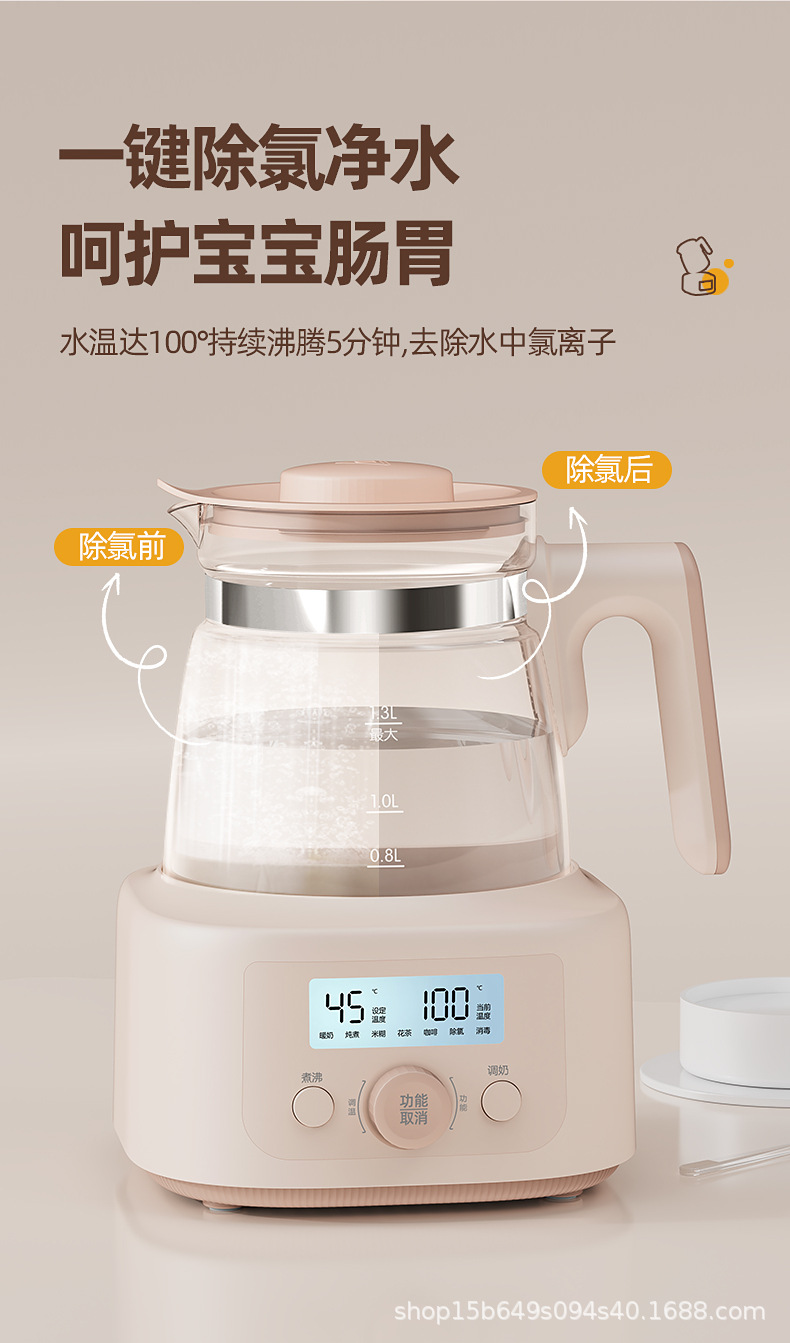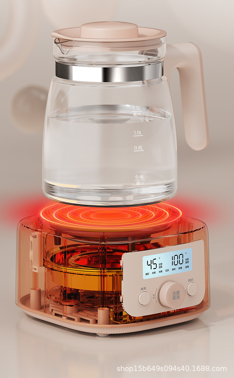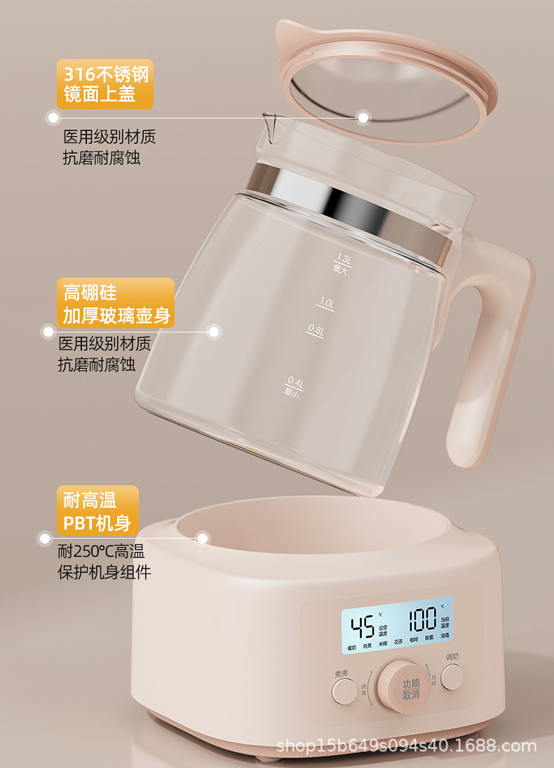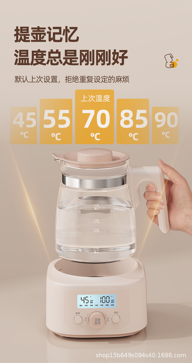 1.3L全玻璃恒温玻璃热奶瓶辅食配件婴儿泡奶智能烧水调奶器热水壶冲奶消毒器冲奶机