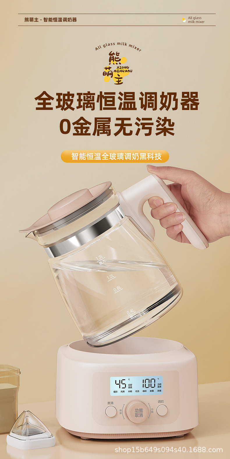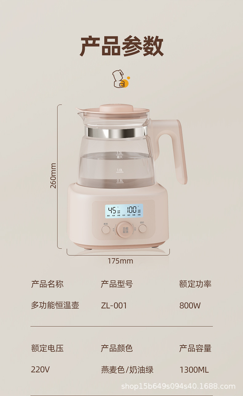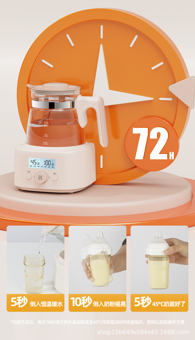 1.3L全玻璃恒温玻璃热奶瓶辅食配件婴儿泡奶智能烧水调奶器热水壶冲奶消毒器冲奶机