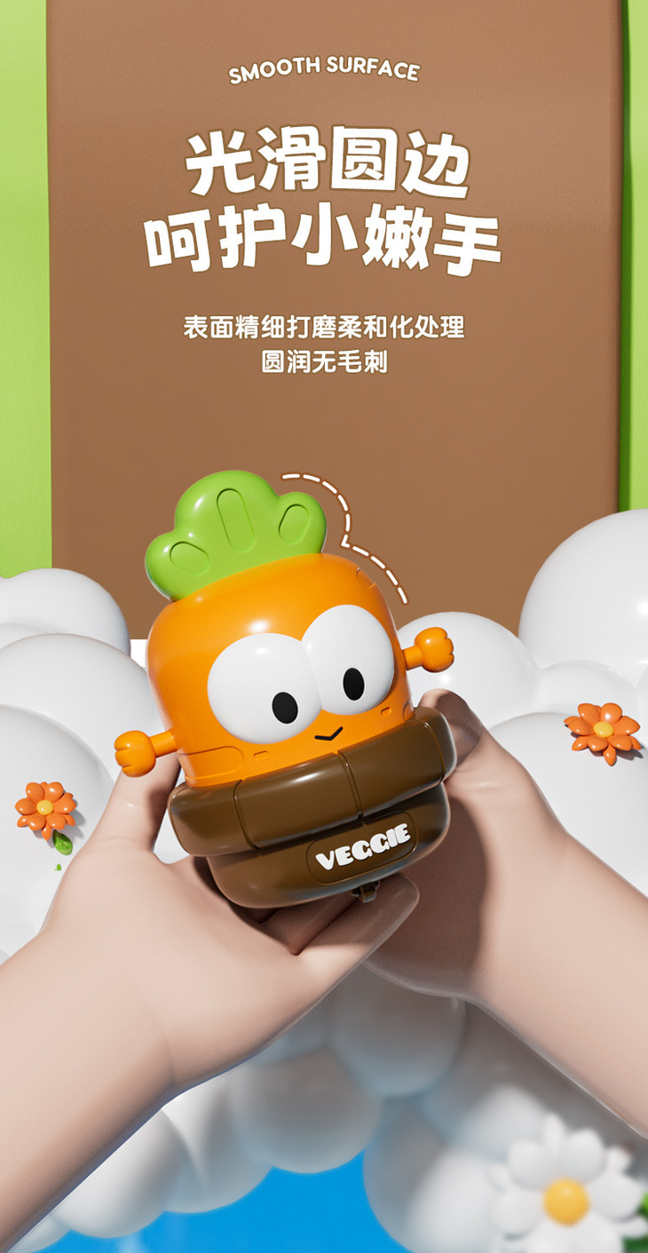 🙌轻按顶部后松手,跟随蔬菜车车快乐向前冲吧 精密齿轮,滑行又远又稳 3岁以下宝宝还能抬头助学爬,吸引注意力呢!🥳