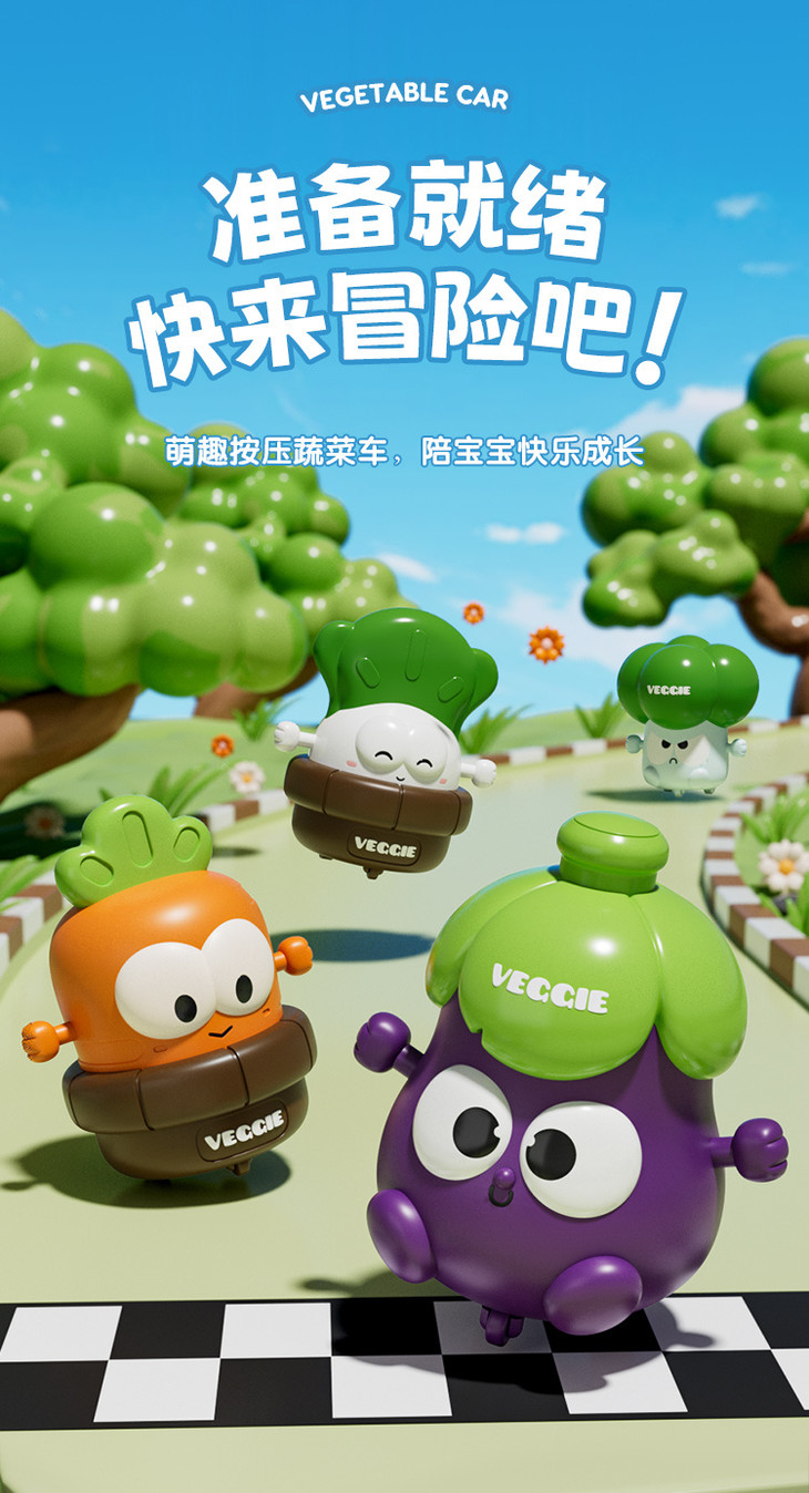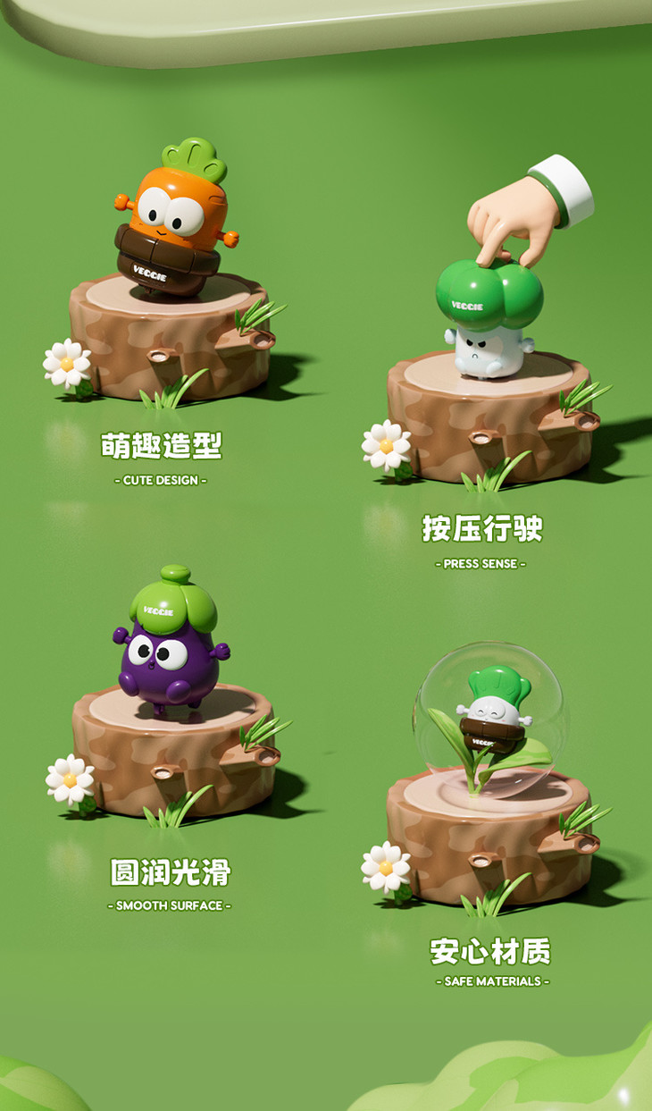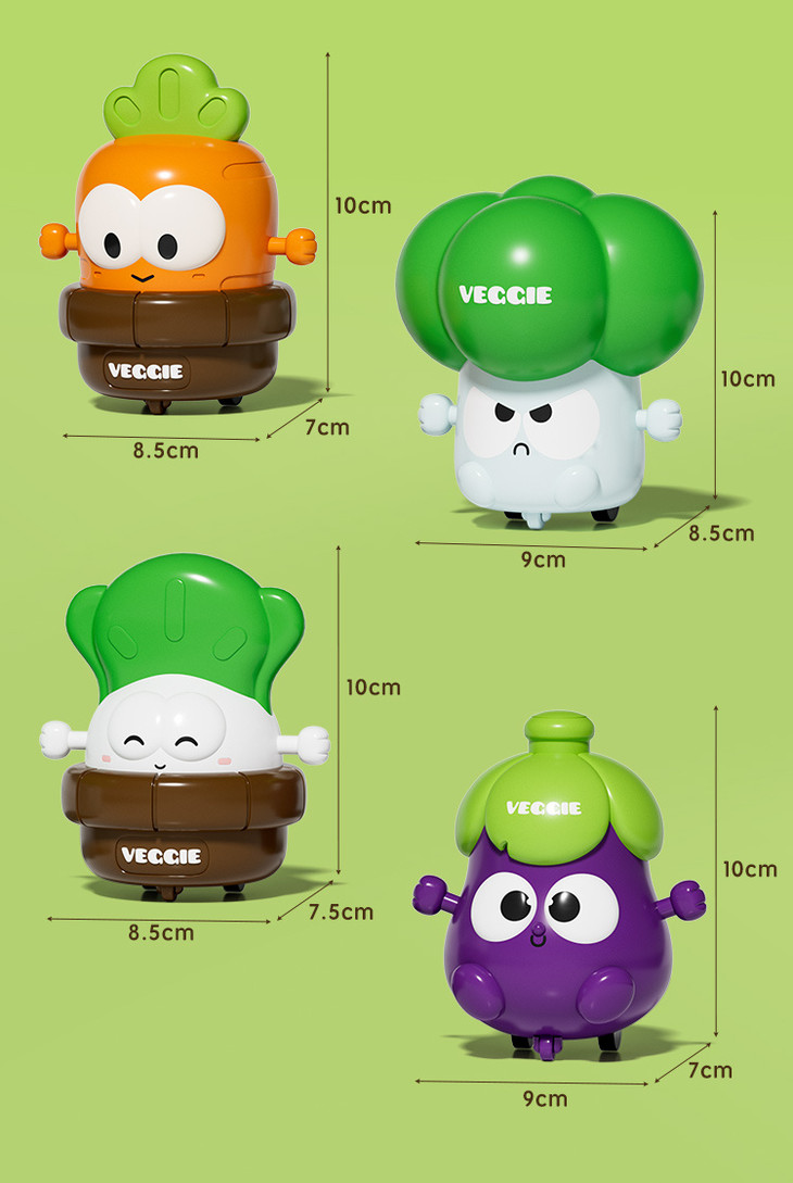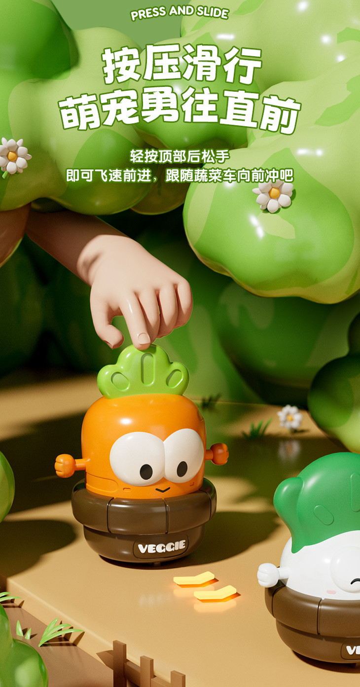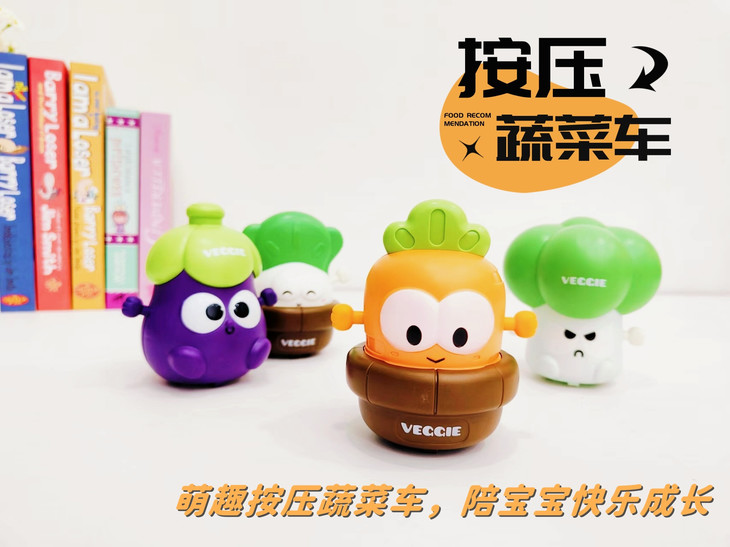 【4只按压萌物29.9元】宝宝的蔬菜按压车,惯性按压,轻轻一按就可以向前走,不用电池,无需充电,嗨玩不停~