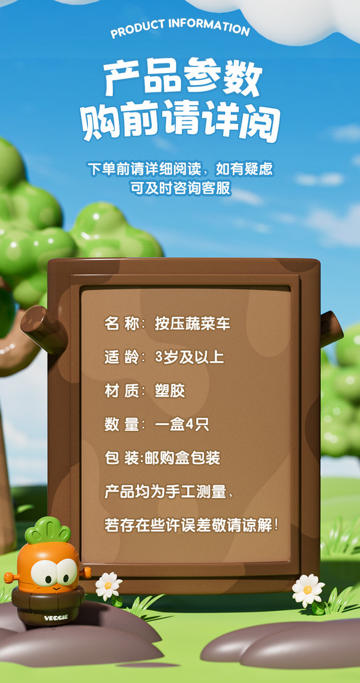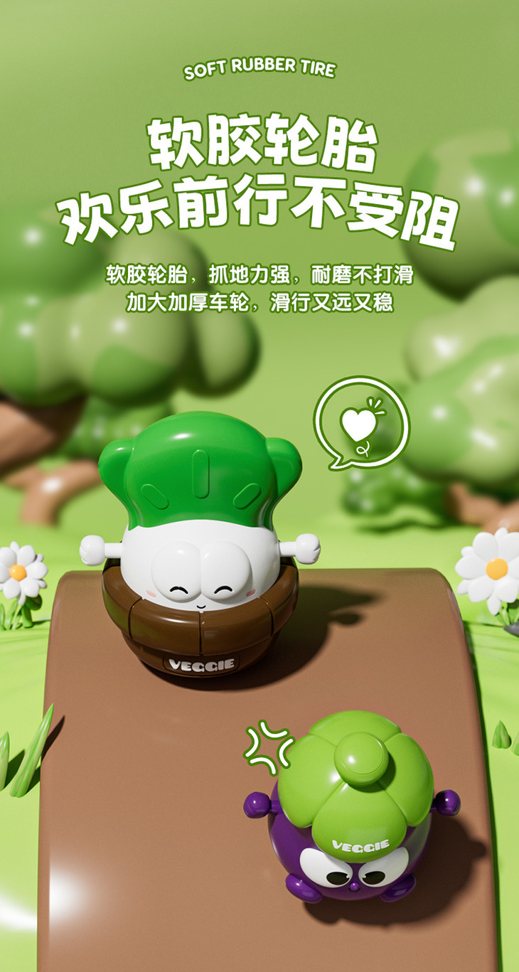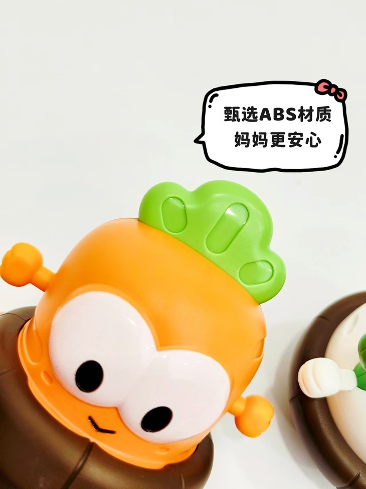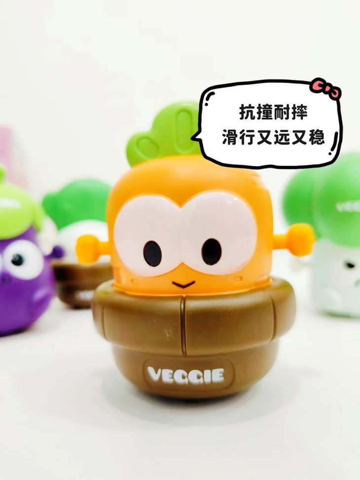 底部轮胎是软胶的,耐磨不打滑💦 🥳🥳🥳拍4只,均价不到8元 好玩、有趣,扛撞又耐摔,亲子一起开启蔬菜车车滑行大赛,太有趣了~🤩