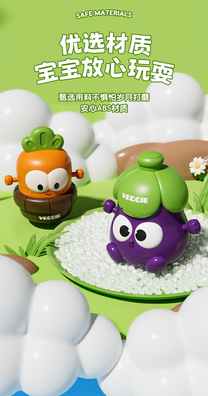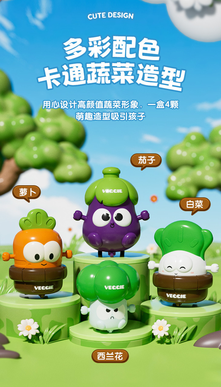 胡萝卜🥕、西蓝花🥦、茄子🍆、小白菜🥬 四种卡通蔬菜形象 👍不仅色彩鲜明,还能提升宝宝认知