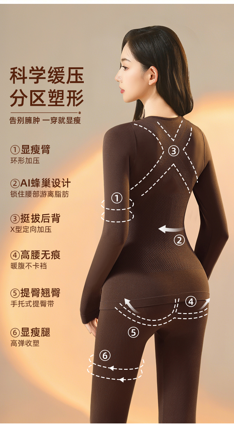 热卖款!!【宁做“腰精”不做“腹婆”】新款女士磨毛塑形美体提臀保暖衣套装 隐藏肉肉保暖衣 加厚保暖 保湿抗静