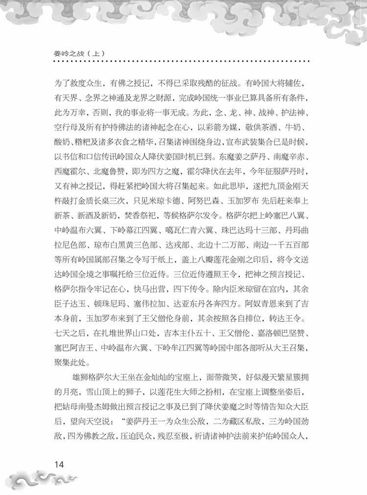 本部主要讲述了由于格萨尔王单枪匹马奔赴北境,降伏北魔鲁赞而数年未归,致使岭国变得群龙无首,武备近废。霍尔国趁机突袭岭国,展开了旷日持久的霍尔岭大战,格萨尔王按照姑母南曼杰姆的授记开战后的第三年,将萨丹大汗制服脚下,夺走其命,盐湖重归岭国,姜境划归岭国附庸,姜人化归释迦佛法信仰之下,最终使百姓安居乐业的故事。