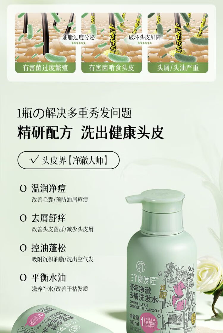 三个魔发匠菁萃净澈去屑洗发水 380ml