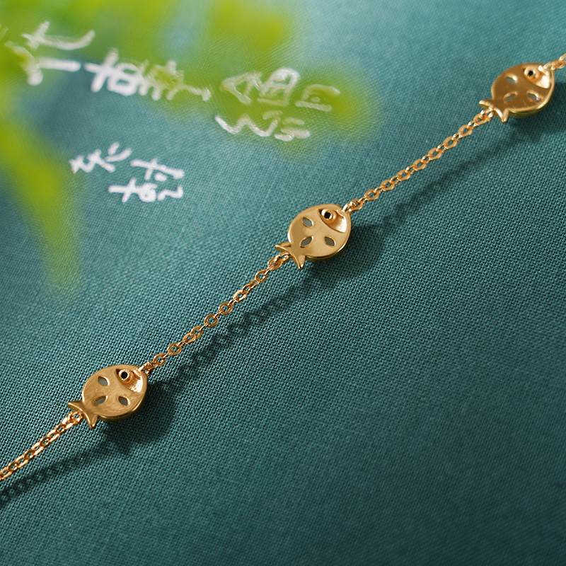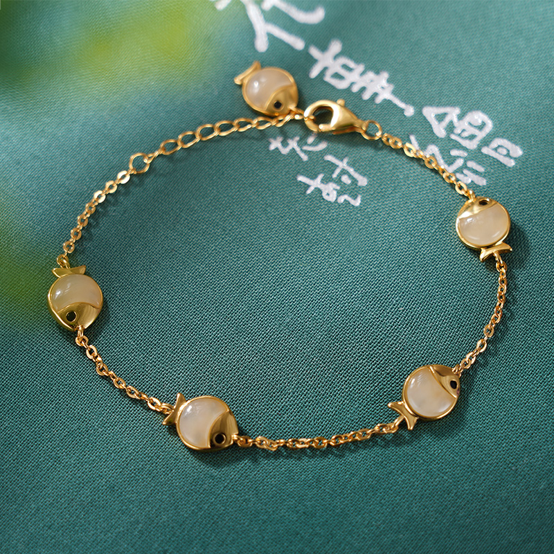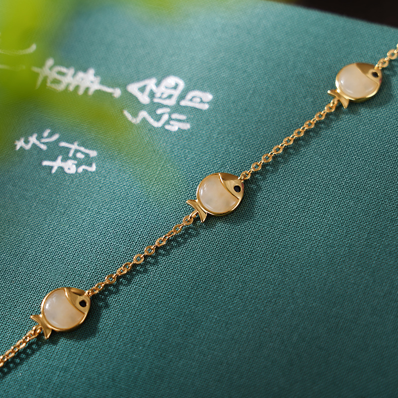 子佩集S925银【情牵】青玉手链【WSE2094】纯银古法镀金小鱼2405
