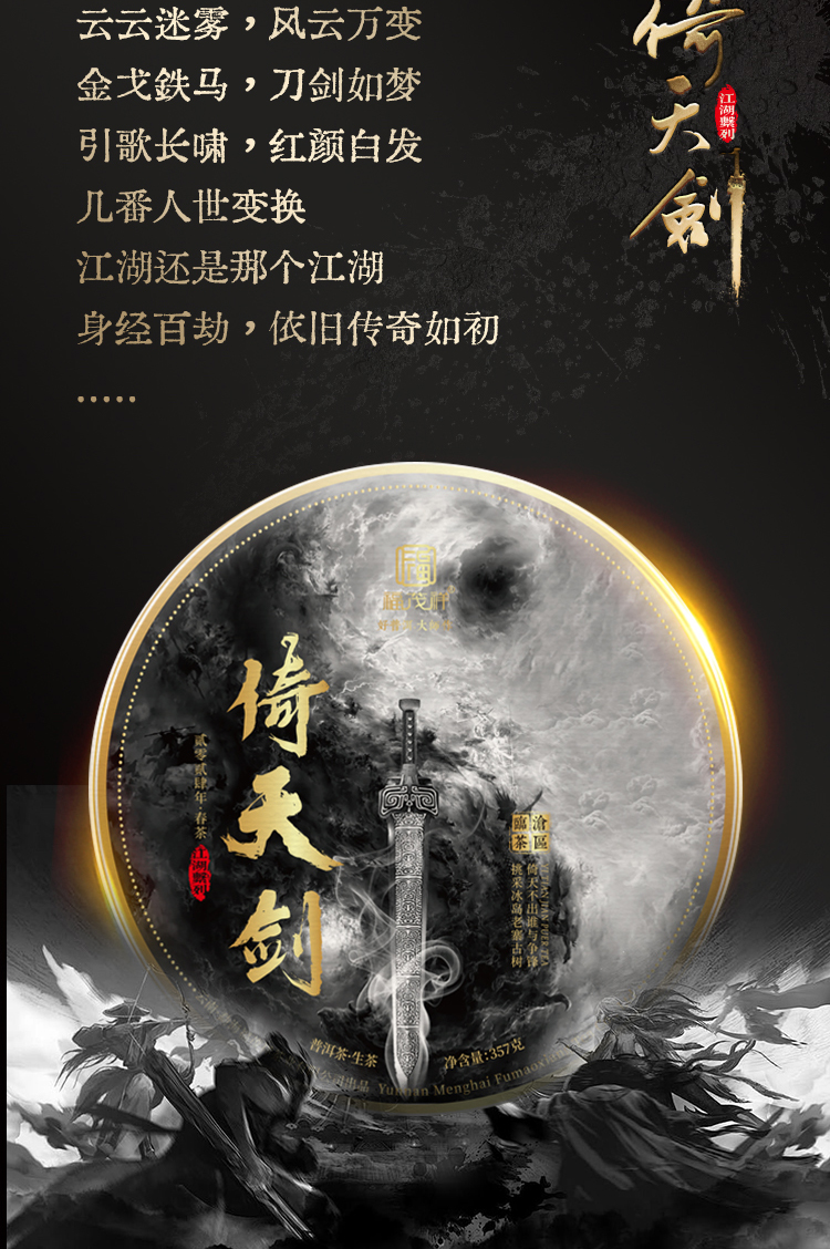 【倚天剑】刚柔并济,韵味十足!2024年春茶云南临沧茶区冰岛老寨(80%)+昔归老寨(20%)拼配普洱茶生茶茶饼357g*5饼 礼盒装1785g