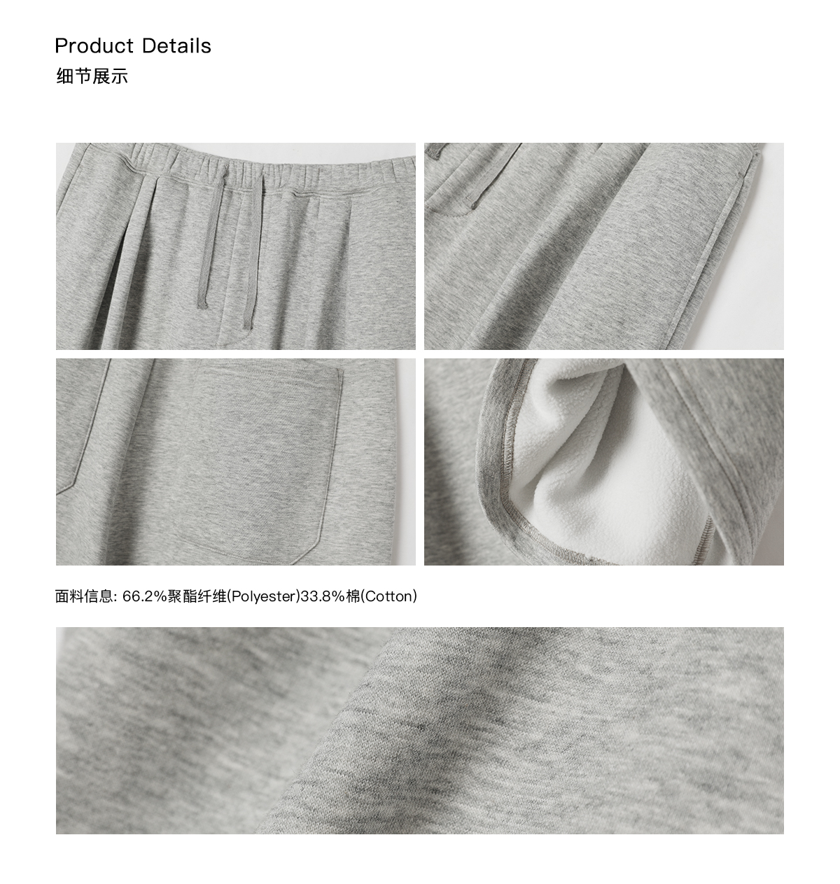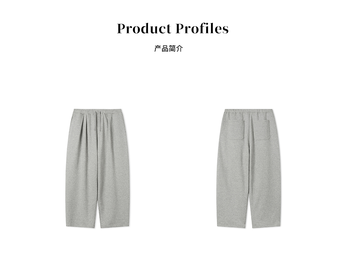 Evistub/E-4QCK736/340G重磅双褶阔腿抓绒卫裤