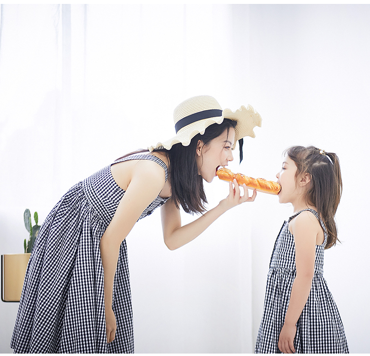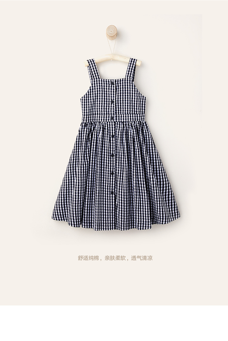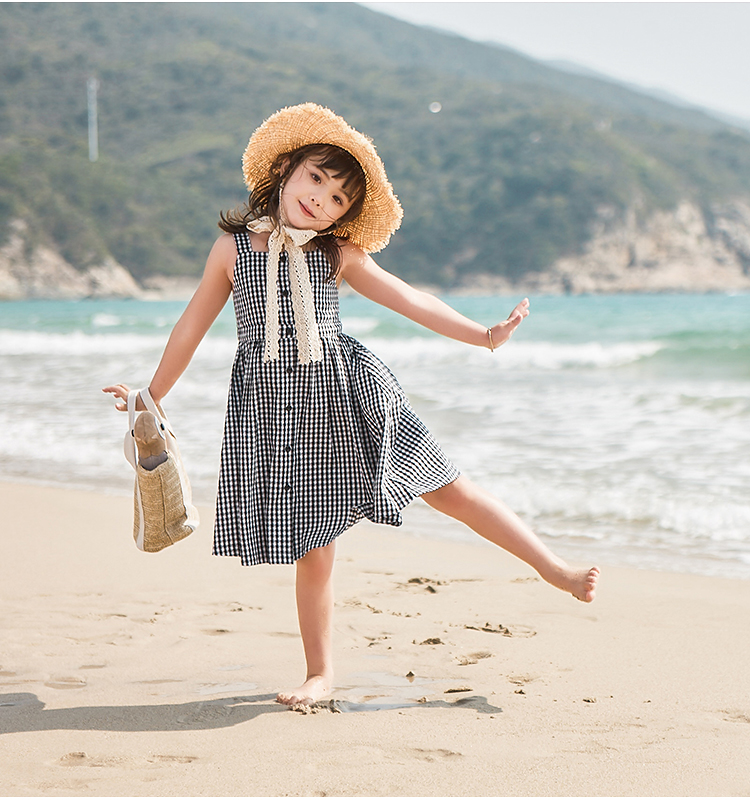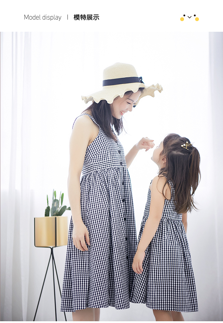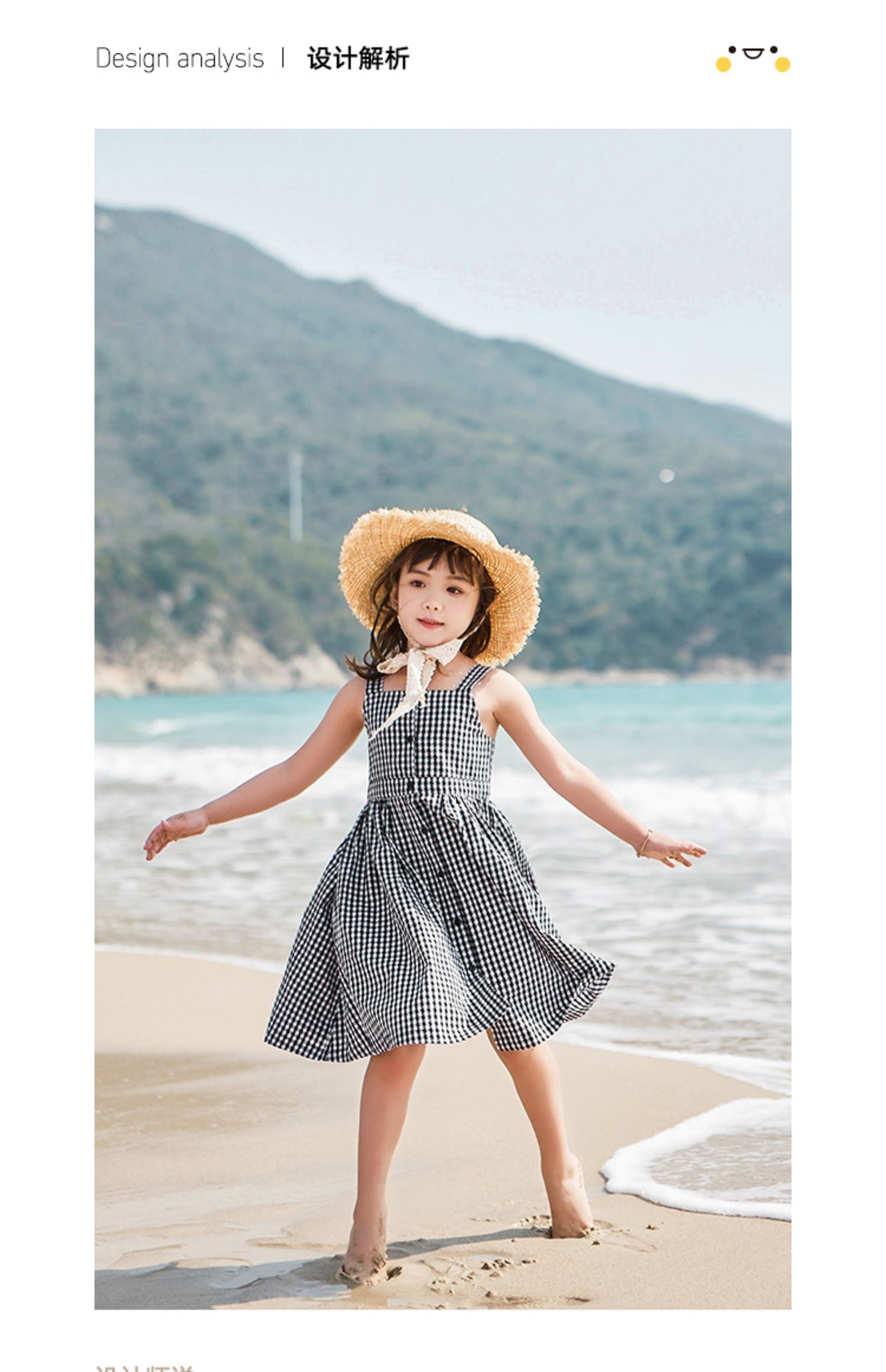 littletime童装春夏黑白女童亲子款复古格子洋气吊带裙连衣裙