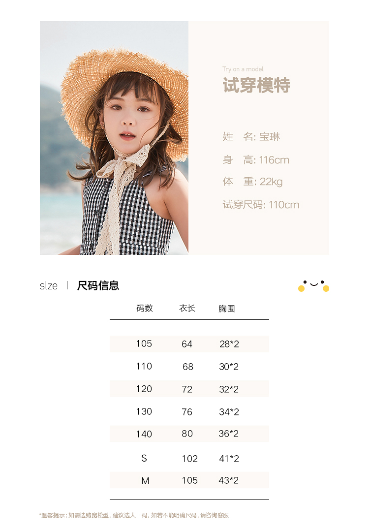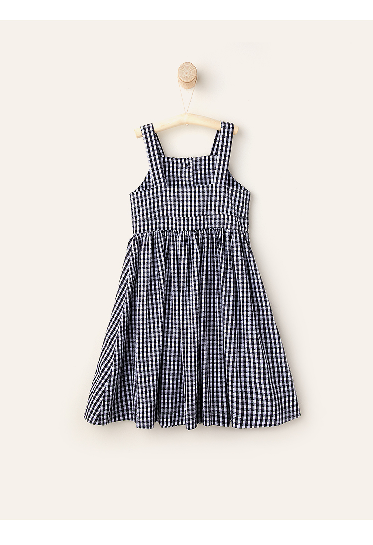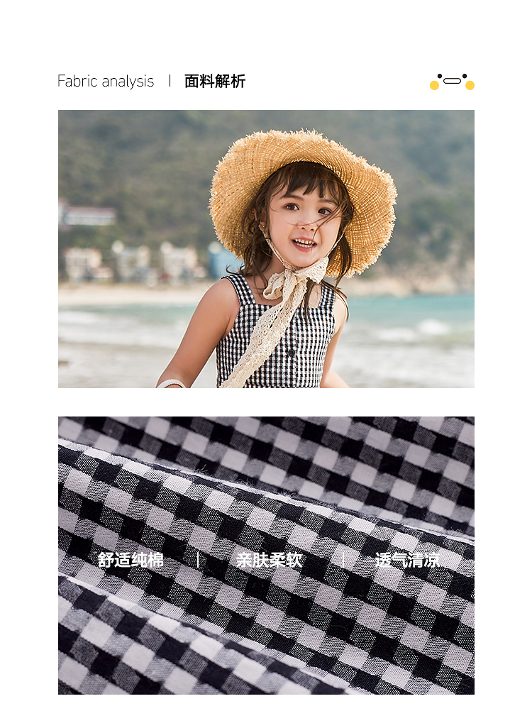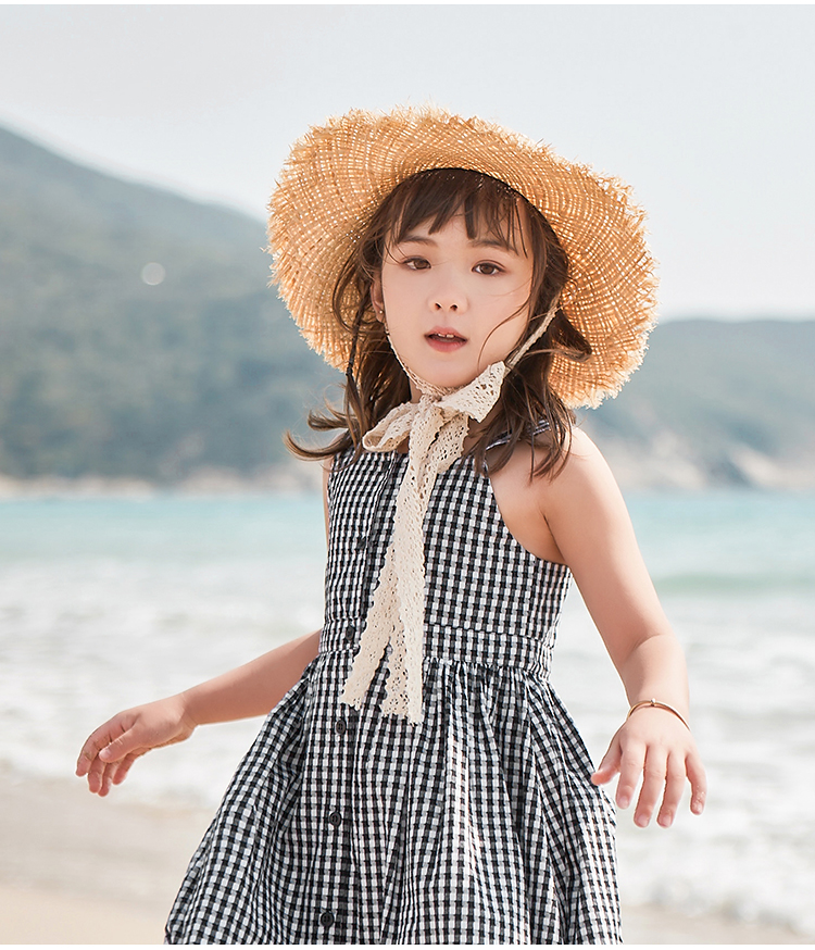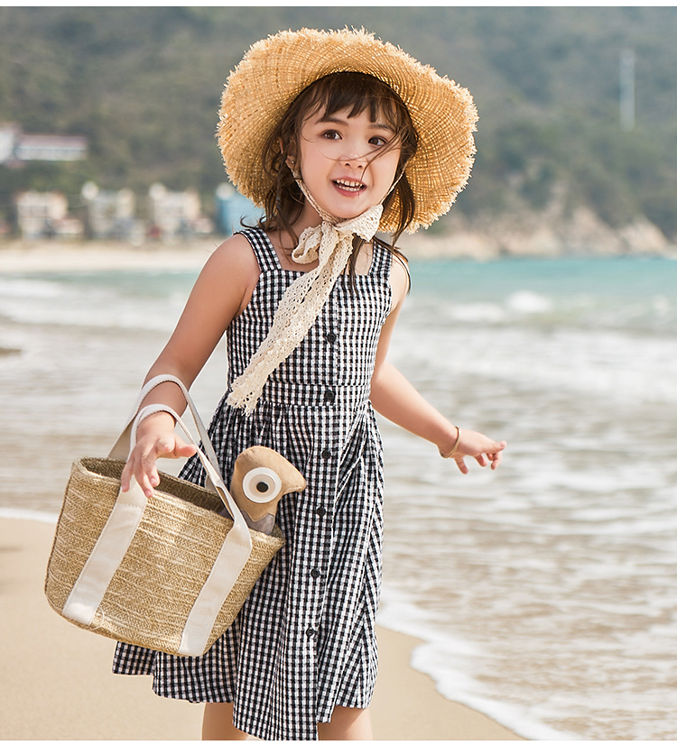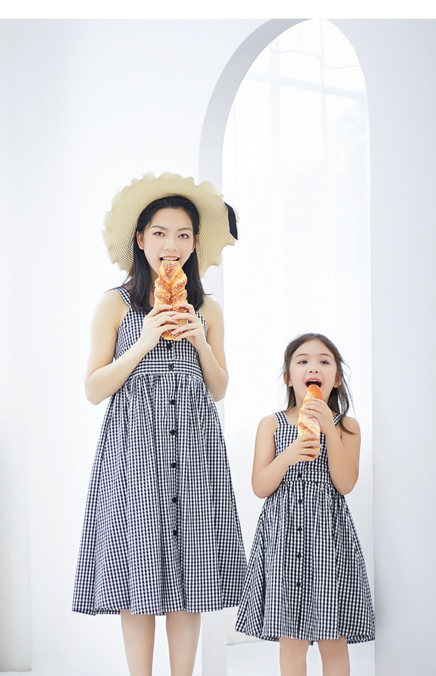 littletime童装春夏黑白女童亲子款复古格子洋气吊带裙连衣裙