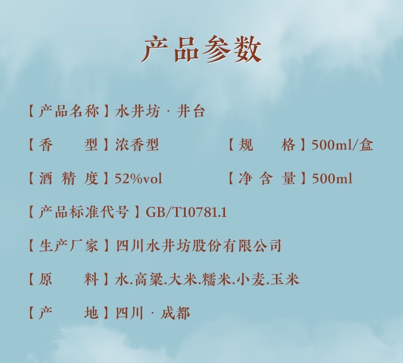 水井坊井台52度500ml*6 浓香型白酒原箱发货-jmw