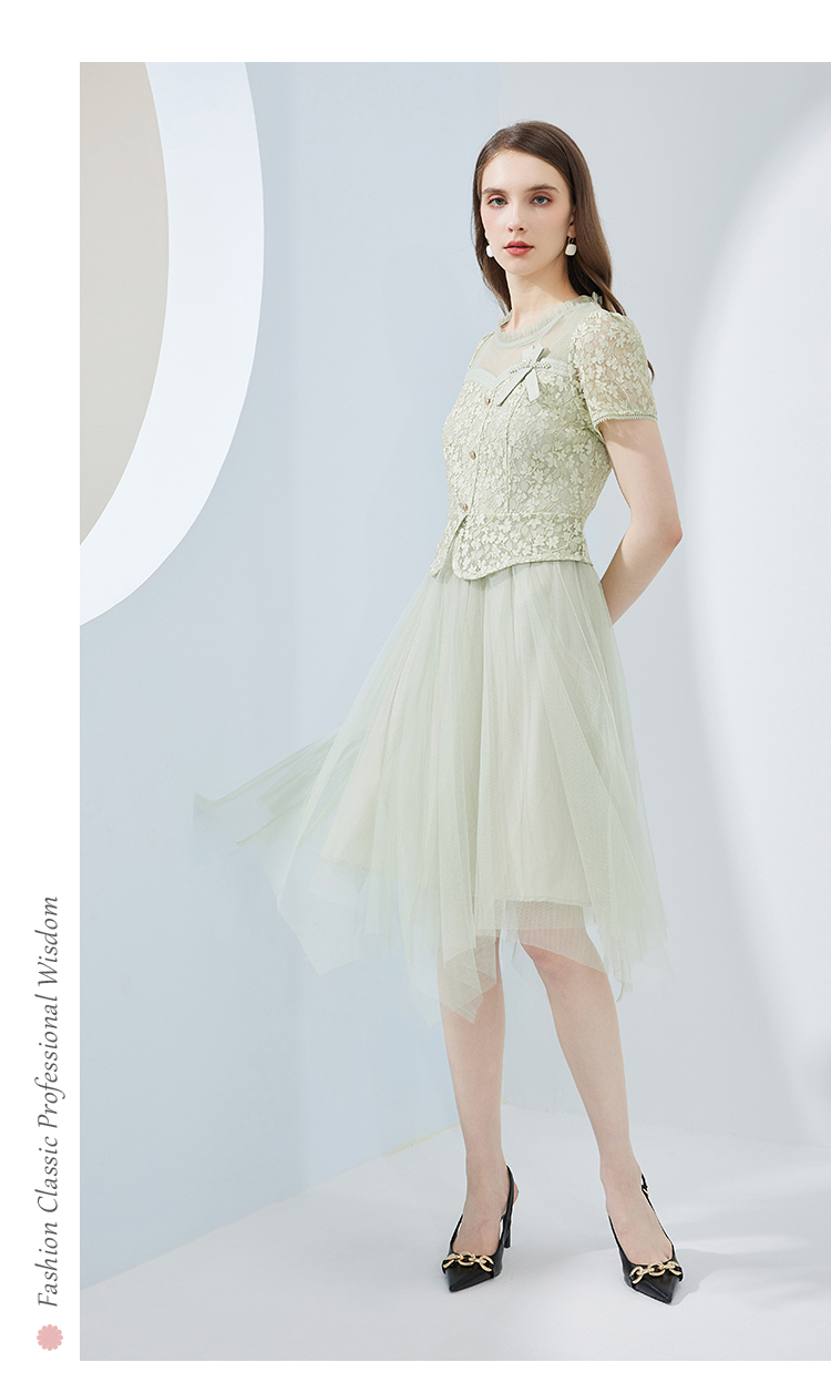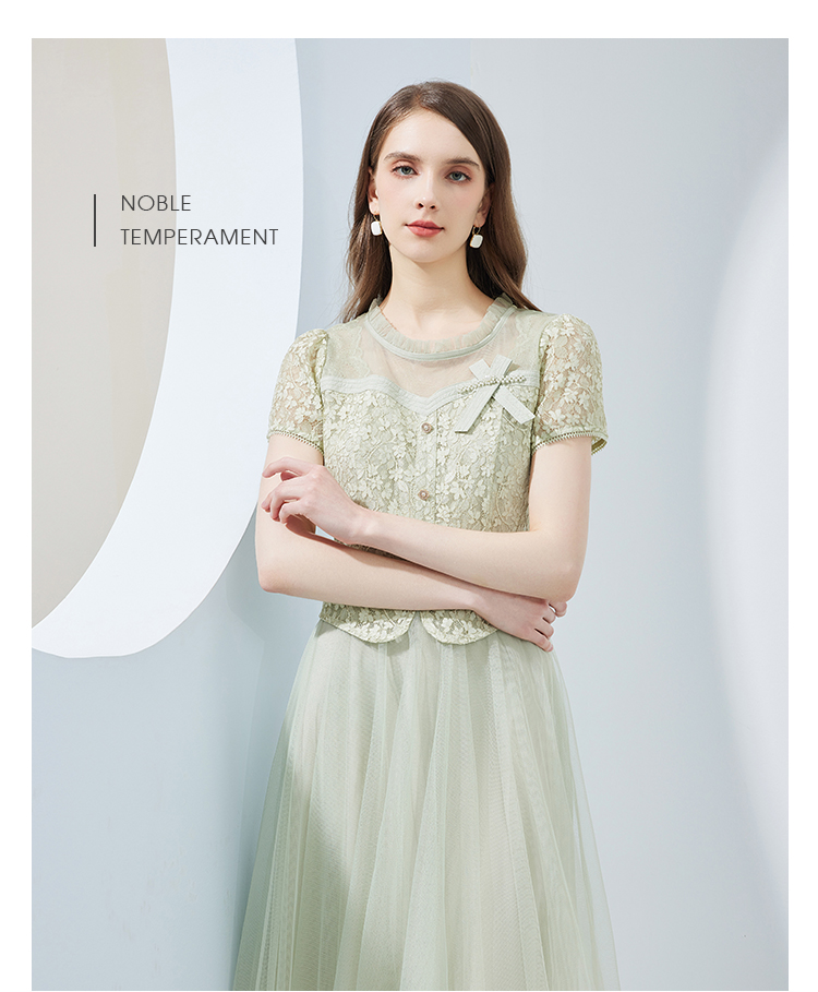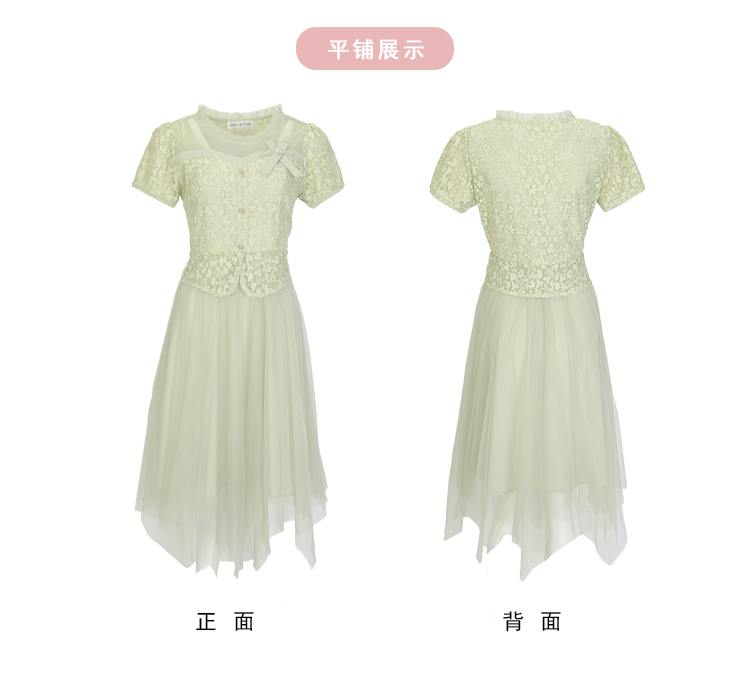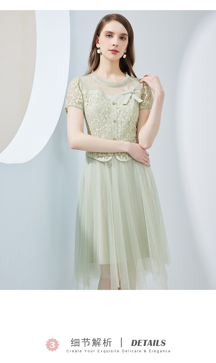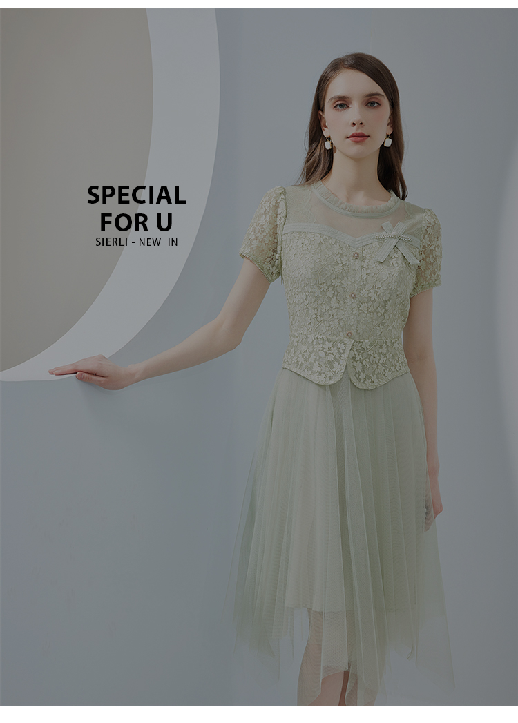 NF8H9斯尔丽瑟俪2023夏季新款蕾丝拼接网纱半裙假两件连衣裙