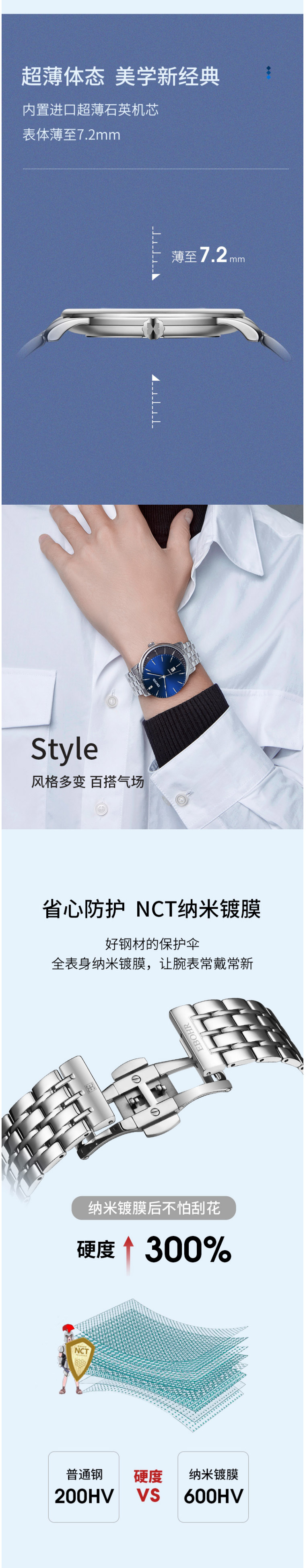 依波表21061319大师系列男款超薄石英表蓝色