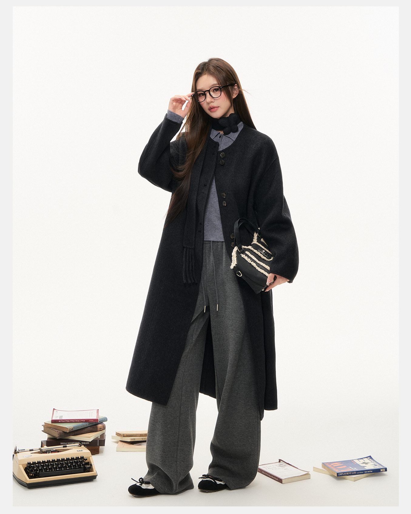 P&X设计师女装2025冬季法式双面呢长款大衣外套 825421104 深灰