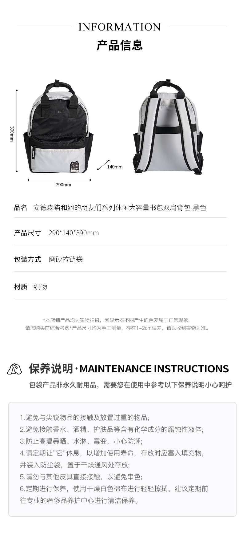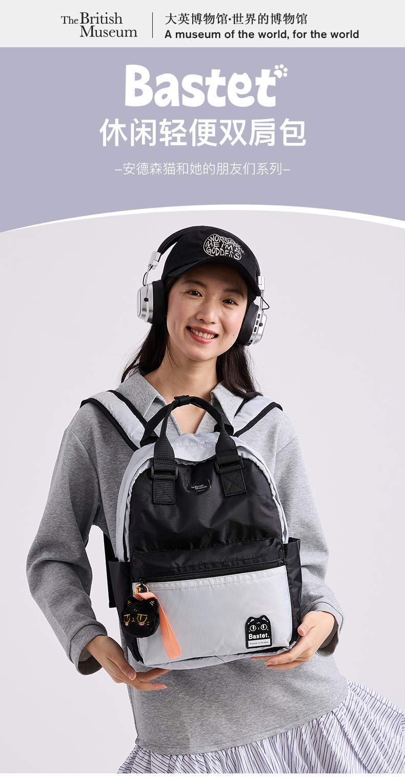 大英博物馆 盖亚·安德森猫和她的朋友们系列 休闲大容量书包双肩背包 黑色