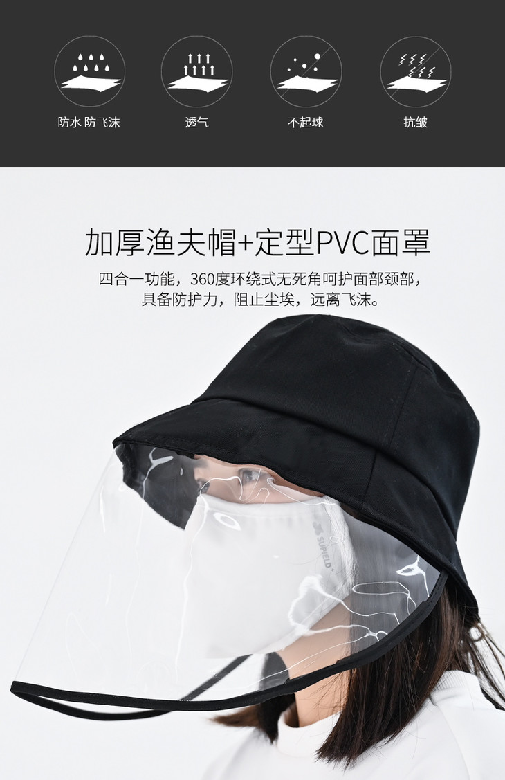 素湃防护用品头罩帽子防尘防飞沫渔夫帽遮阳帽