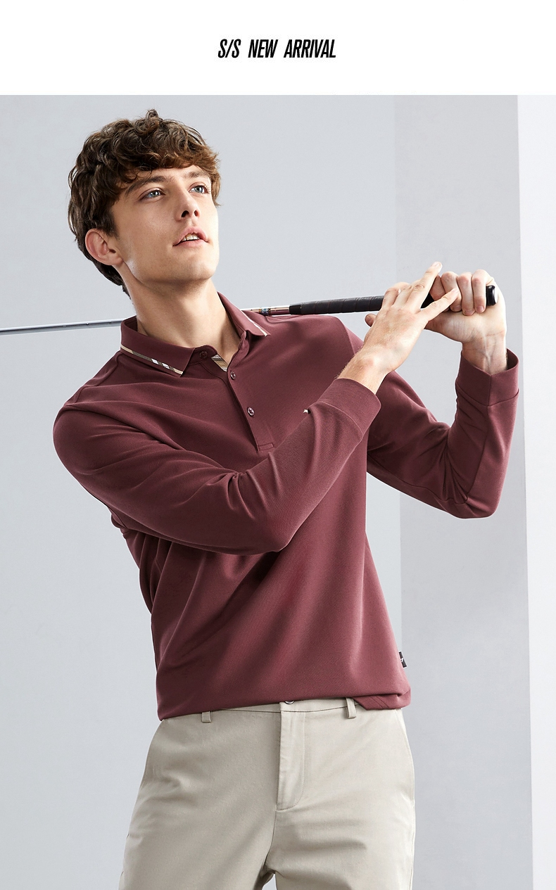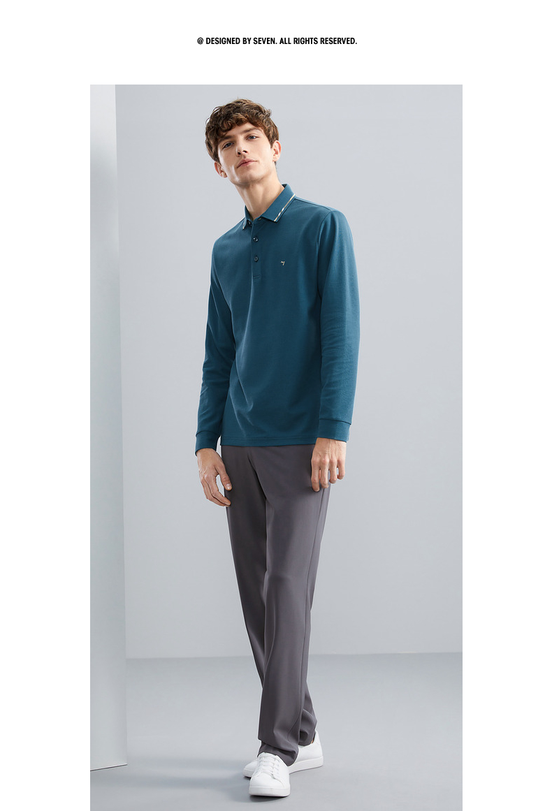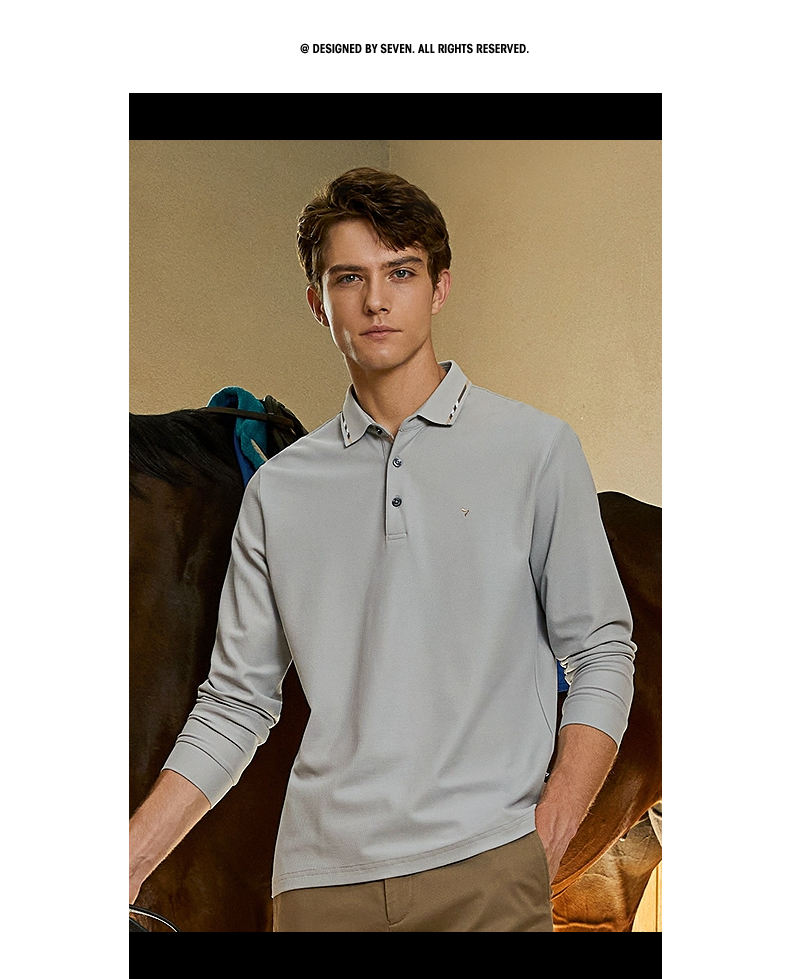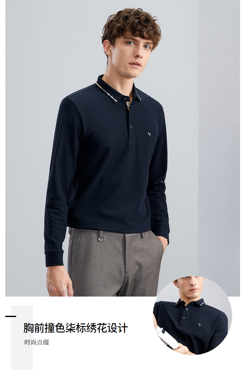 【5A抗菌】柒牌polo衫男长袖秋季薄款舒适有型多色翻领T恤衫 125T70150