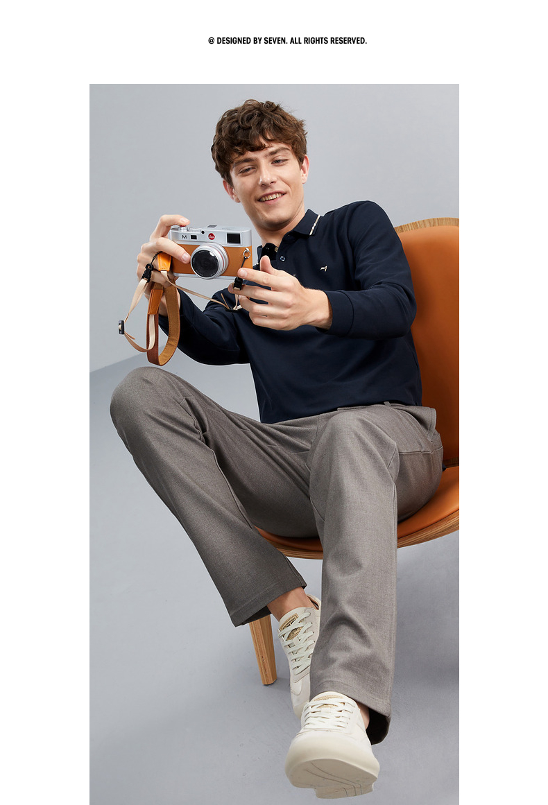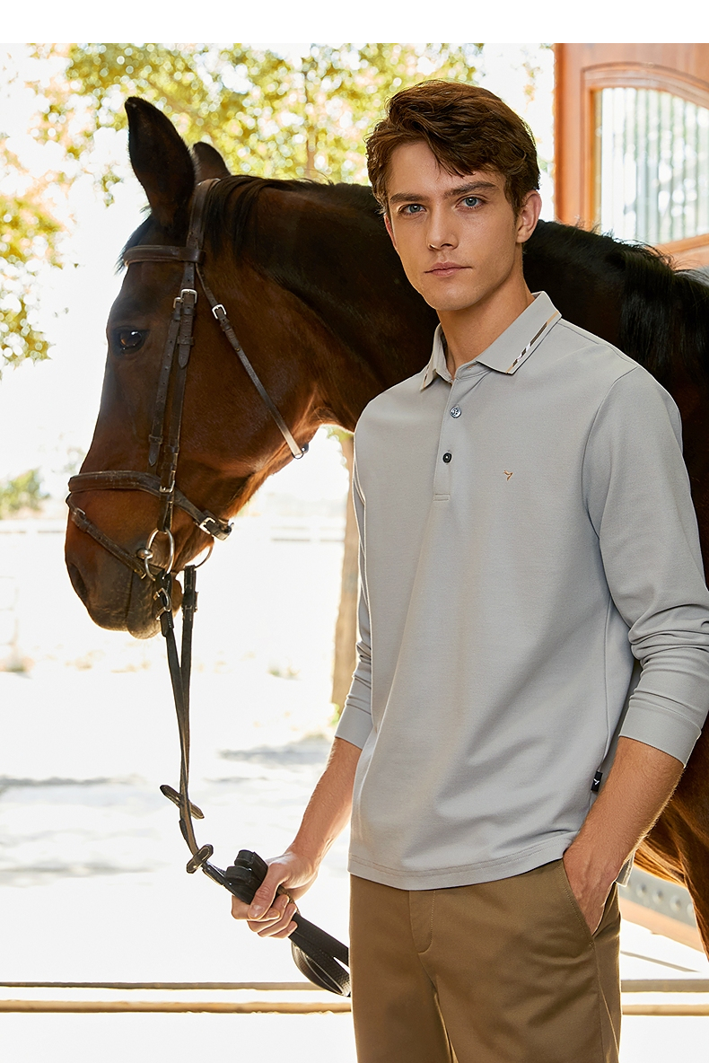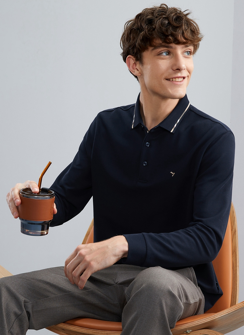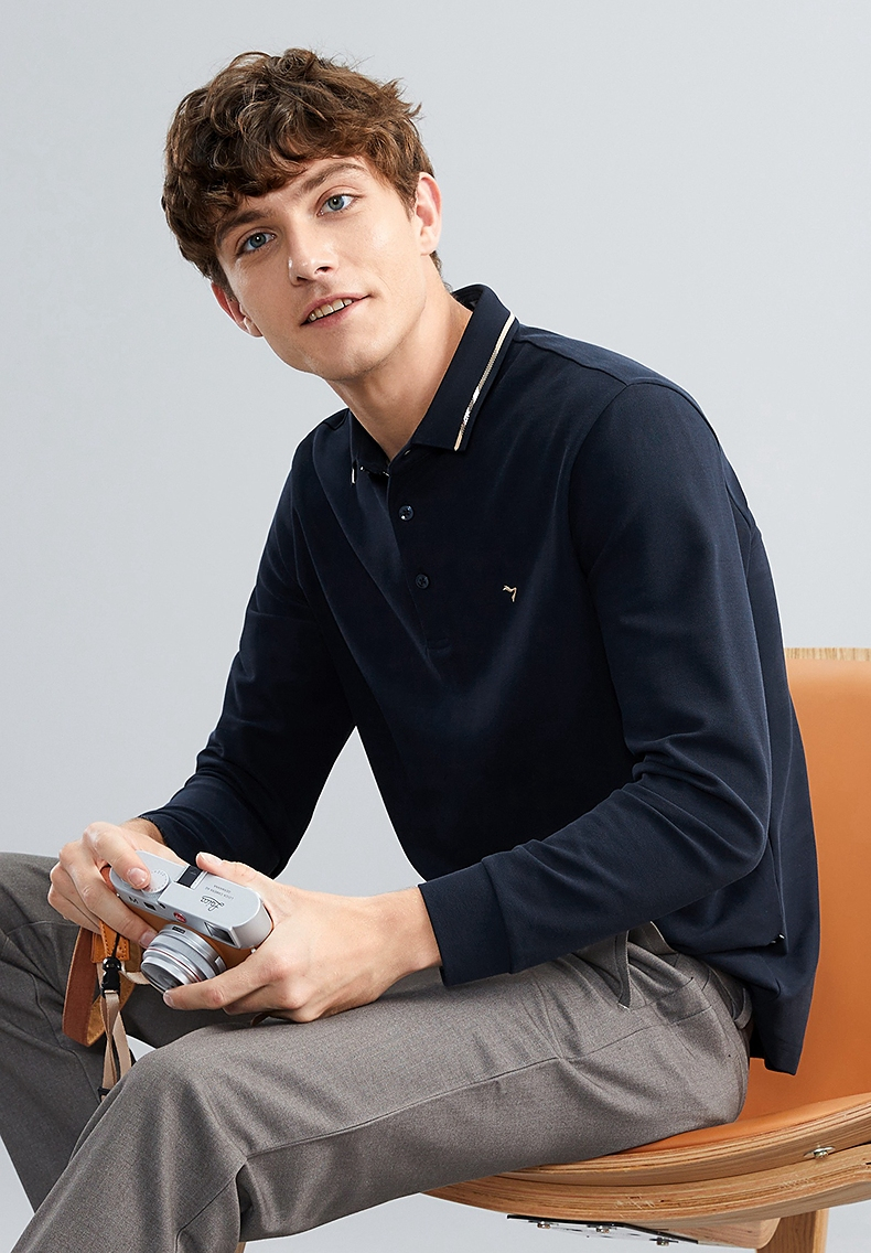 【5A抗菌】柒牌polo衫男长袖秋季薄款舒适有型多色翻领T恤衫 125T70150