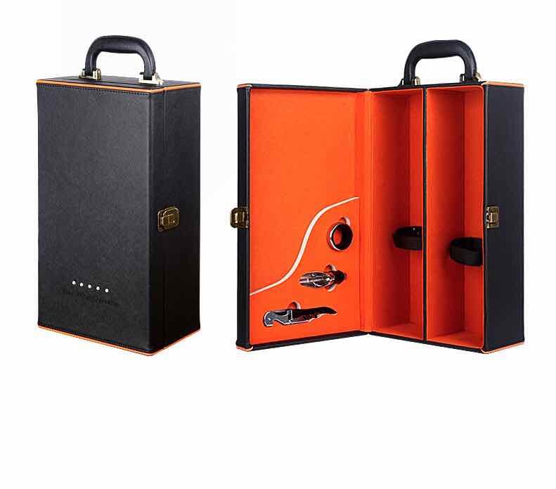 皮盒镶钻带酒具黑橘色(双支)